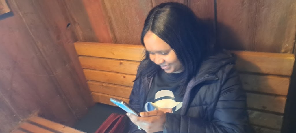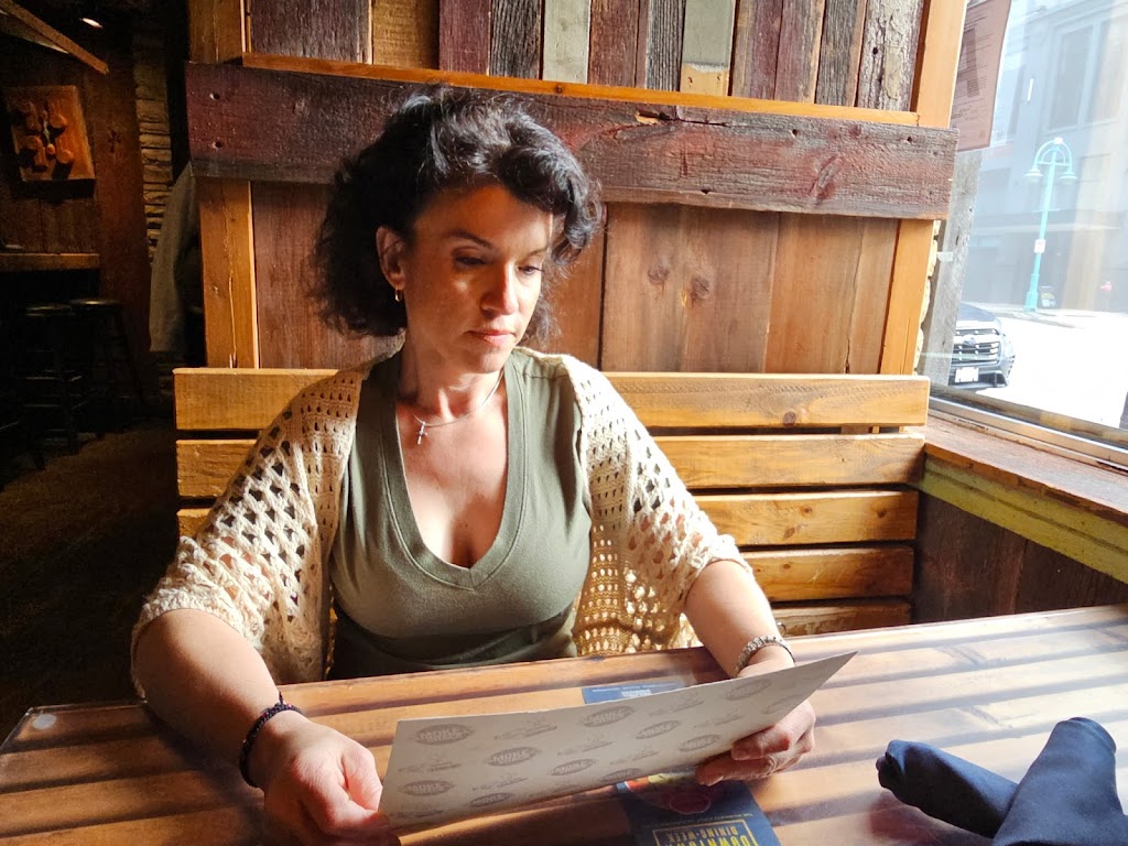 I was kindly directed to the bar, and to Ellen. At the bar, I sat for two minutes as Ellen was fidgeting with a handheld gadget. After two minutes I tried to get her attention. I said hello several times.