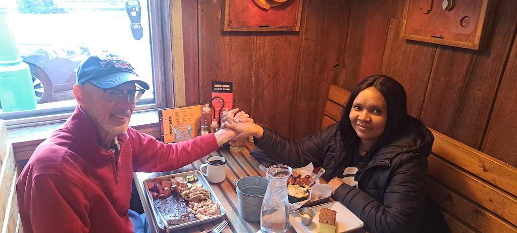 We had a great experience at the Smoke Shack - our waitress Kaia was really attentive, brought everything quickly, checked up on us and even change the channel on the big screen TV so that we could watch the football game we wanted. Food was delicious:) make sure you try the Brussels sprouts! Serving size was fantastic and really good tasted like something we’ve had back in Texas. This place is easy to miss - feels like an authentic bbq joint nestled in between city buildings. Totally worth trying! Lots of indoor and outdoor seating.