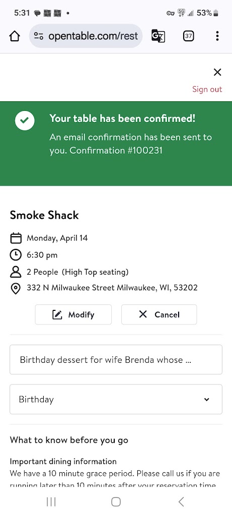 Must try if you are in Milwaukee! We sat outside with our own personal fireplace and enjoyed yummy drinks and food while being able to have a great conversation. Linsey was our server and gave us great recommendations after listening to both of us and what we both were looking to eat and drink. I don’t think the night would have been the same without her recommendations! Brisket and Mac and cheese were both fire! Will be coming back.
