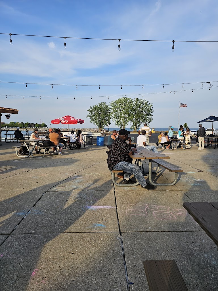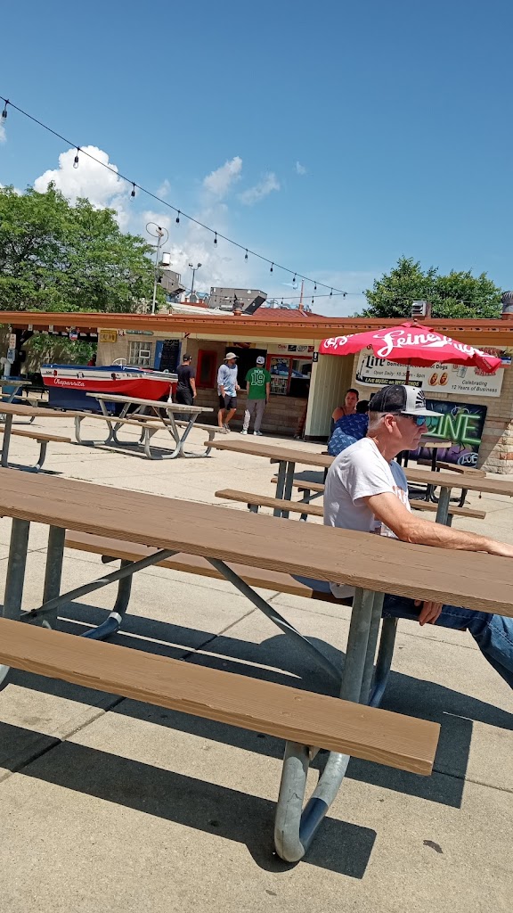 Great atmosphere, hot dogs and polish sausages are fresh and the right temperature. Nice place to sit by the water. Live music, laid back, relaxing.