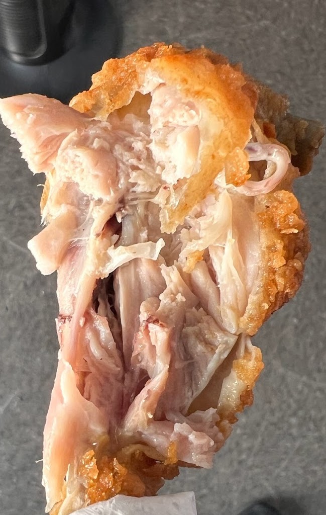 Grabbed lunch for me and my employee, he thought the leg in picture was a little too undercooked for his liking. I scoffed , it didn't seem too bad to me. So I ate my portion.