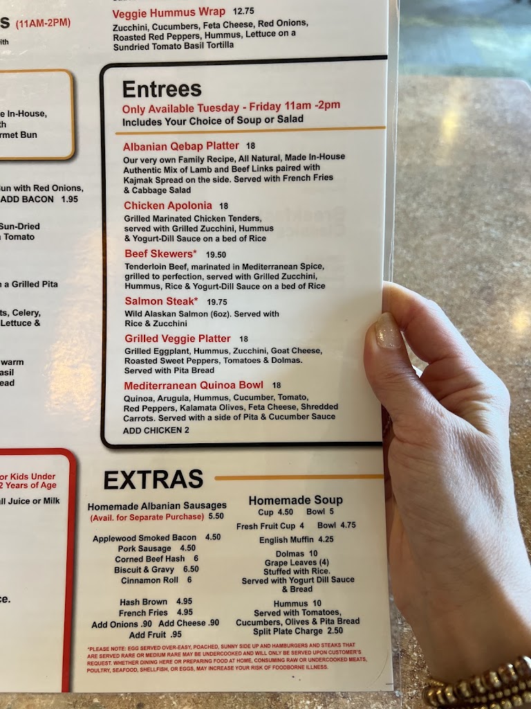 Great breakfast. You have to try the Albanian sausage. Friendly service.