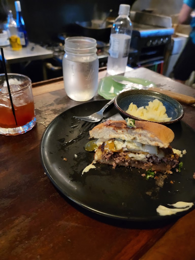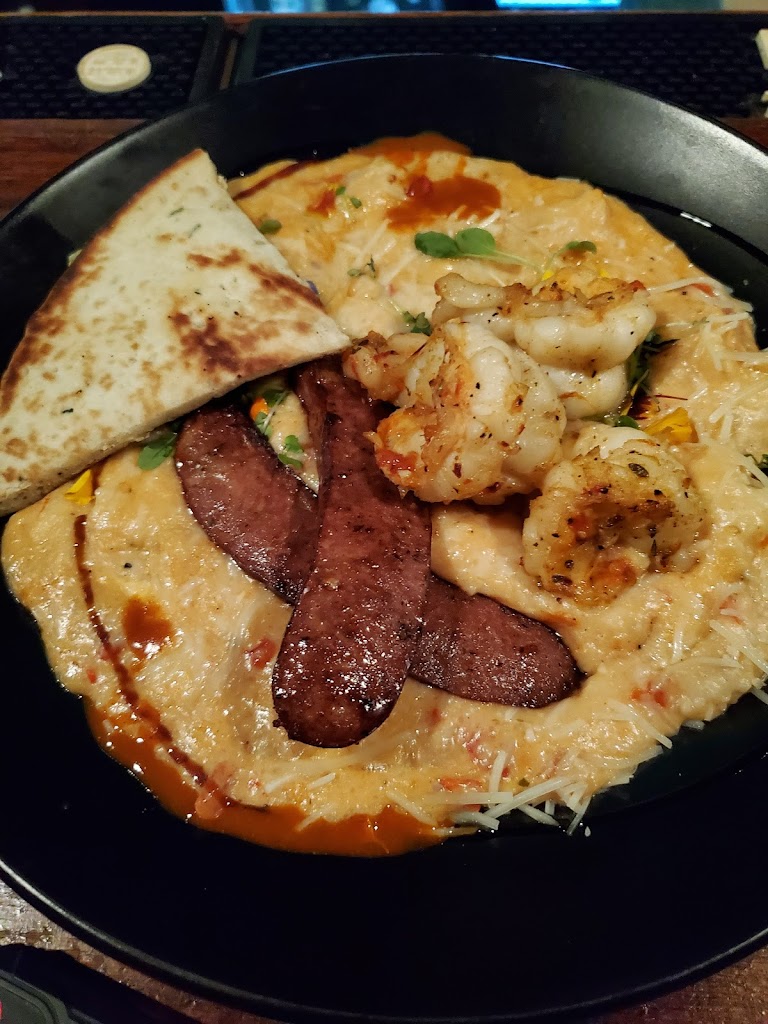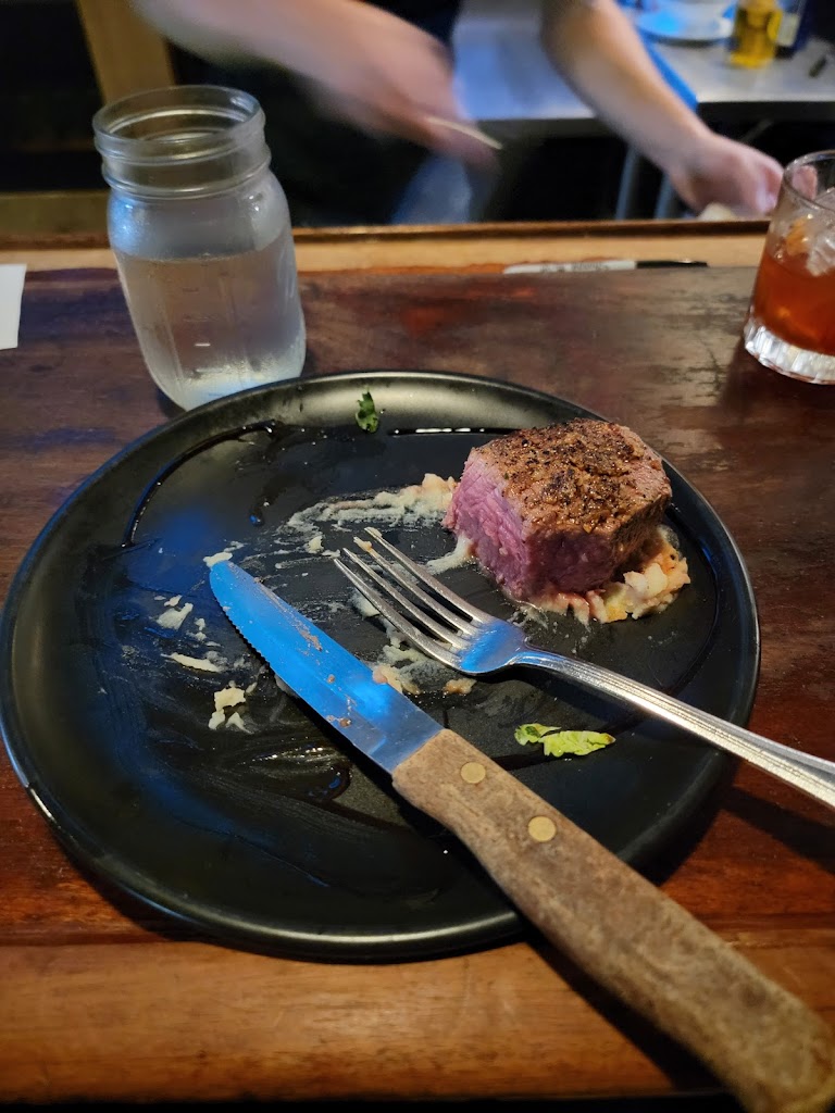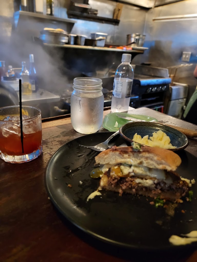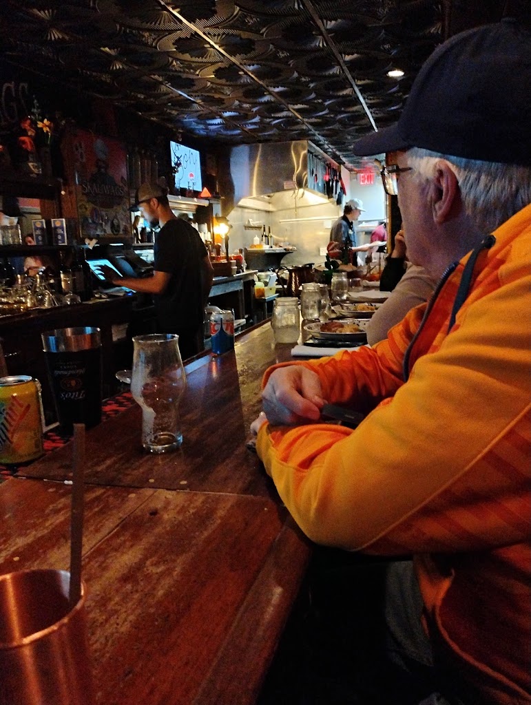 Tonight, we stopped there on a whim and I got to watch magic. I watched a human manage a bar, mixed drinks, and prepare food that was out of this world with the flow of a lava lamp. I am absolutely still in awe as a person who’s been involved in the service industry on and off for 30 years. A bartender by themselves would’ve been stressed, but he pulled that off and then dropped us two of the most amazing servings of food I’ve had in years, with a packed bar.
