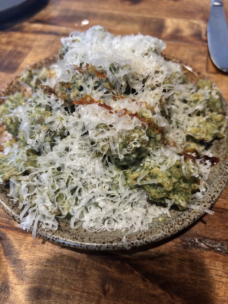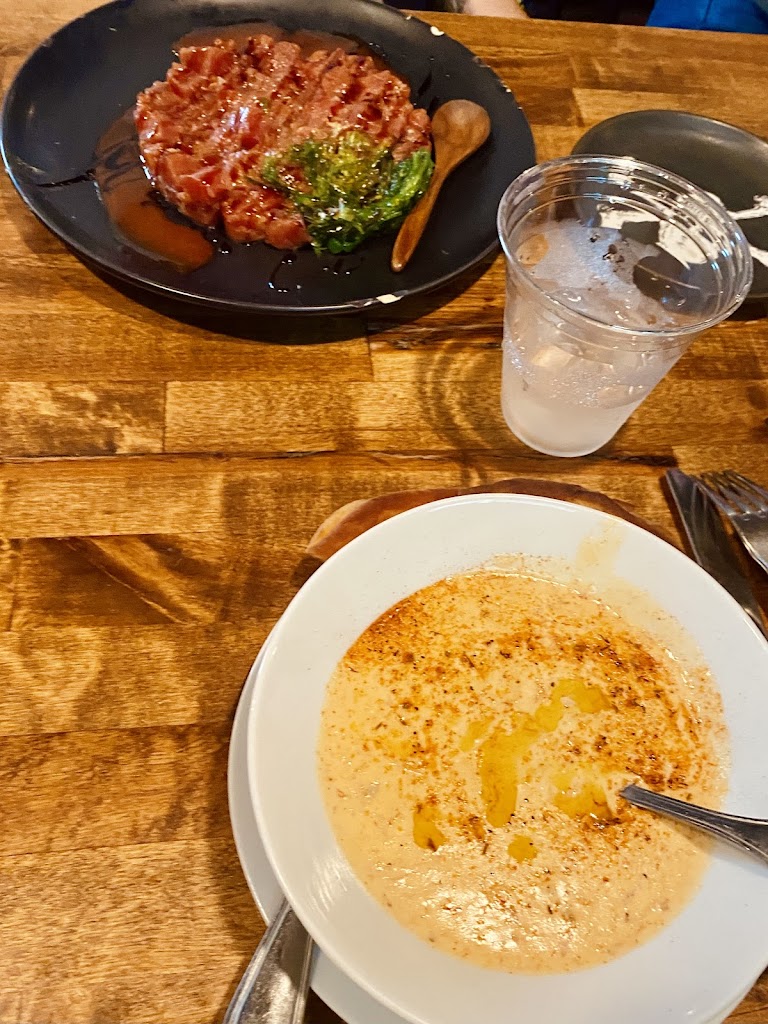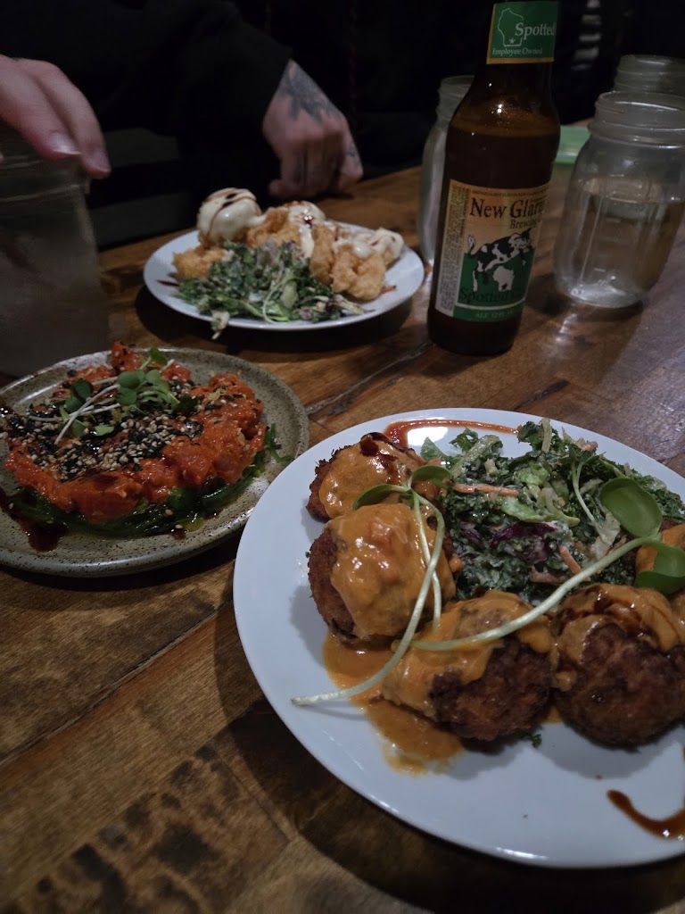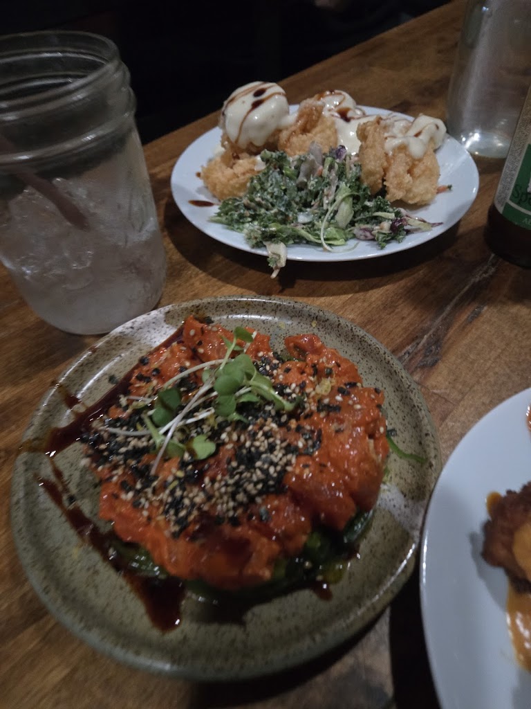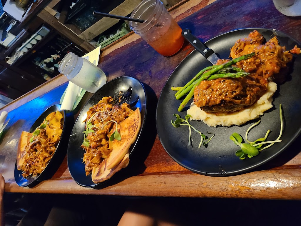 Tonight, we stopped there on a whim and I got to watch magic. I watched a human manage a bar, mixed drinks, and prepare food that was out of this world with the flow of a lava lamp. I am absolutely still in awe as a person who’s been involved in the service industry on and off for 30 years. A bartender by themselves would’ve been stressed, but he pulled that off and then dropped us two of the most amazing servings of food I’ve had in years, with a packed bar.