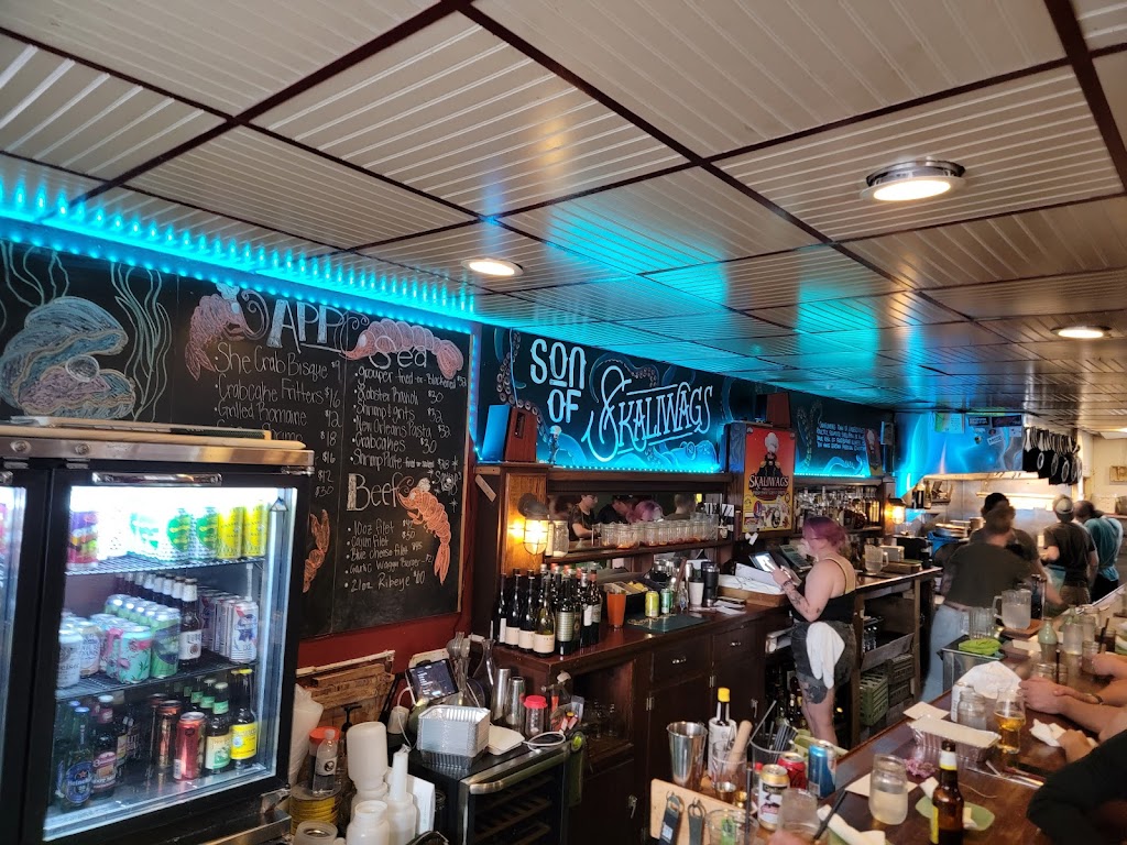 This was one of the most enjoyable dining experiences I have had EVER. What a treat to find such a gem in a very small town in Northern Wisconsin. The experience was exactly as framed - a five star dive bar. The food was excellent, especially the She Crab Bisque (best seafood bisque ever?). When I could not decide between the grouper and filet, the owner/Exec chef (Marshall) said, I got you. And what comes out but my own surf n turf (not on the menu). (Did I mention the cocktails and dessert were also very tasty?) Granted, it is still a dive bar at its heart so if you are looking for white table cloth kind of experience, this is not the place for you. But if you want to feel like you are a guest at a big dinner party where you can make friends with the host and people at the bar next to you (they also have a few tables), then this is the place for you. I will road trip to Algoma again if I ever find myself within striking distance again just so I can come back to Son of Scalawags. Go early as the place is tiny and very popular with the locals. You should also expect to spend some quality time here. Go for the experience, don’t be rushed, and be patient if they are packed as they only have a few staff. And go now before it gets “discovered” and becomes a destination dining experience.