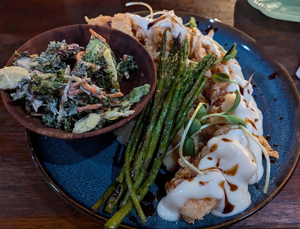 A definite gem in Algoma, this place is an unassuming dive with delicious, creative food. The restaurant allowed us to eat outside even though they were really busy and didn’t have service outdoors at the moment. We really appreciated that since we had our dog with us. The chef brought everything out and was super kind. The shrimp appetizer with the aioli and duck sauce was phenomenal. The only reason I’m giving this place 4 stars instead of 5 is the grouper dish was pretty small for $34 as shown in my photos (I had a piece of the fish and chips on my plate from my companion’s plate). The shrimp appetizer, while delicious, included 4 shrimp at $18. Everything is priced a bit too high for the area and portion sizes.