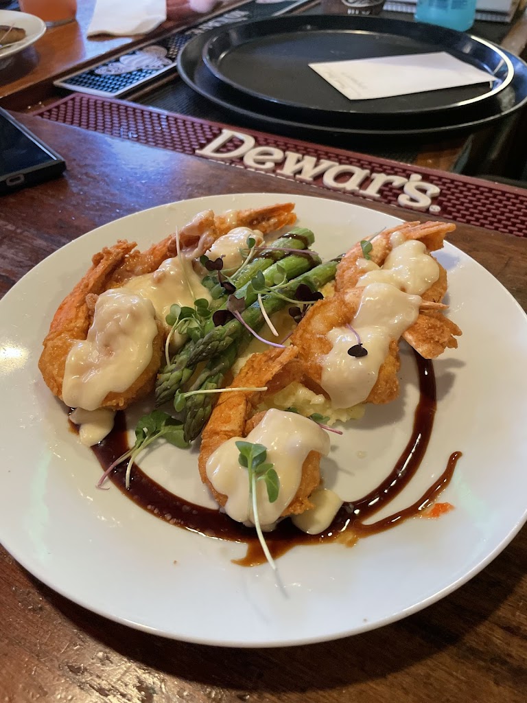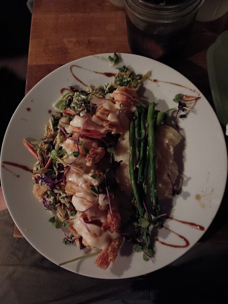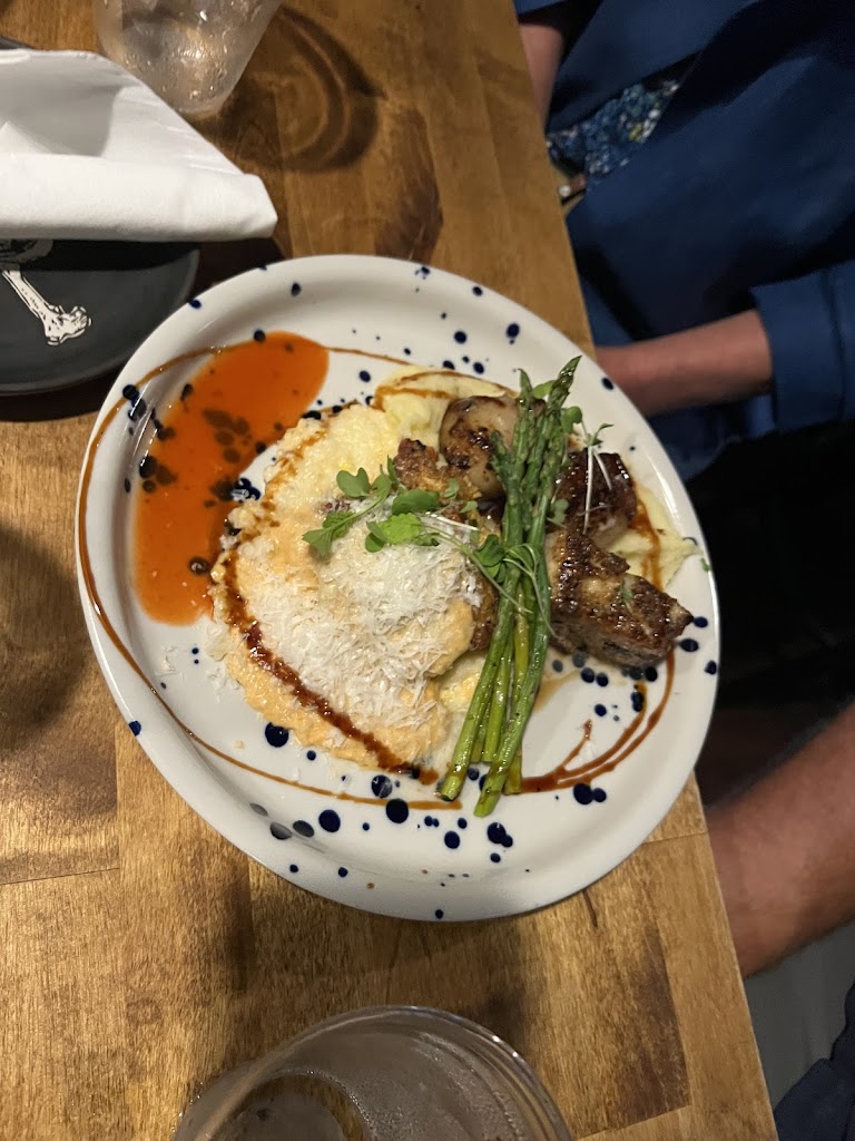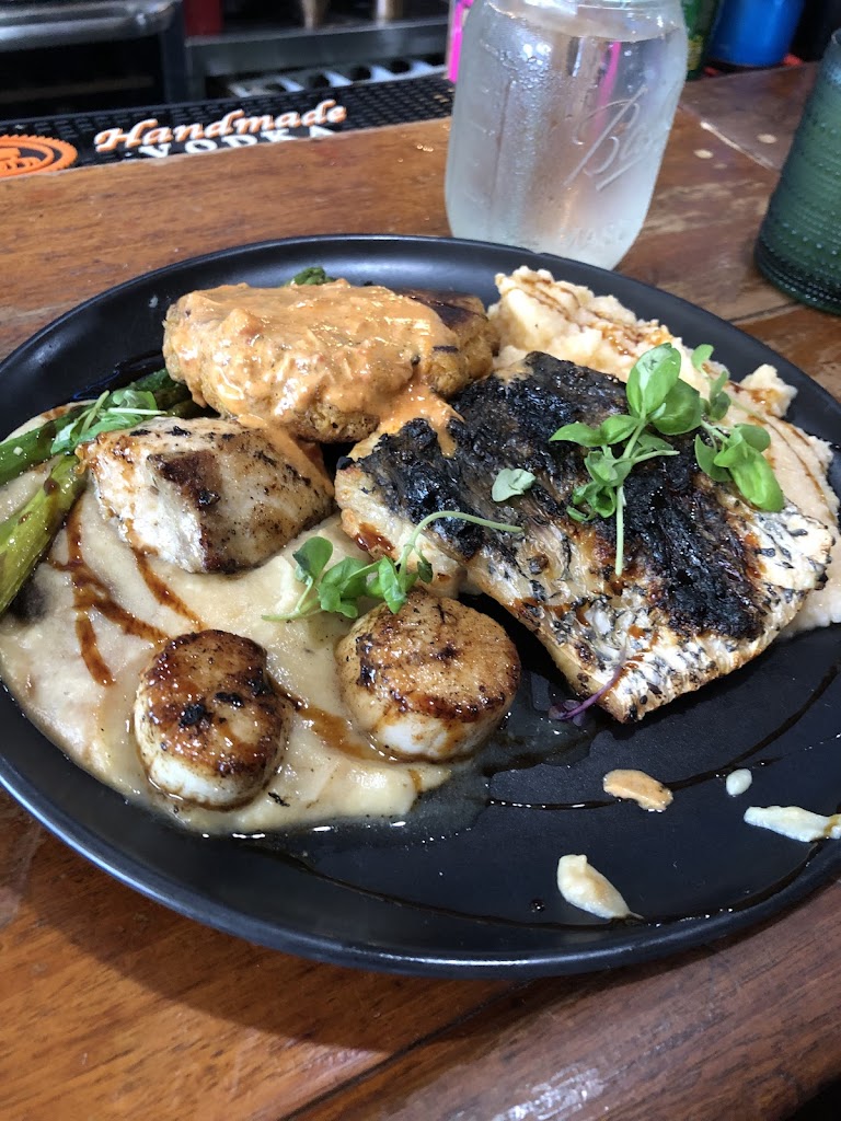 Some of the best food we have ever had! Great ambiance, outstanding food, best service ever! Gem of a place! Chef Platter had grouper, scallops, and filet over garlic mashed potatoes and asparagus. Crispy shrimp is served over an incredibly delicious slaw. And the grilled Romaine was phenomenal! Abbi sure knows how to make a cocktail and Marshall is a proper artist in the kitchen!