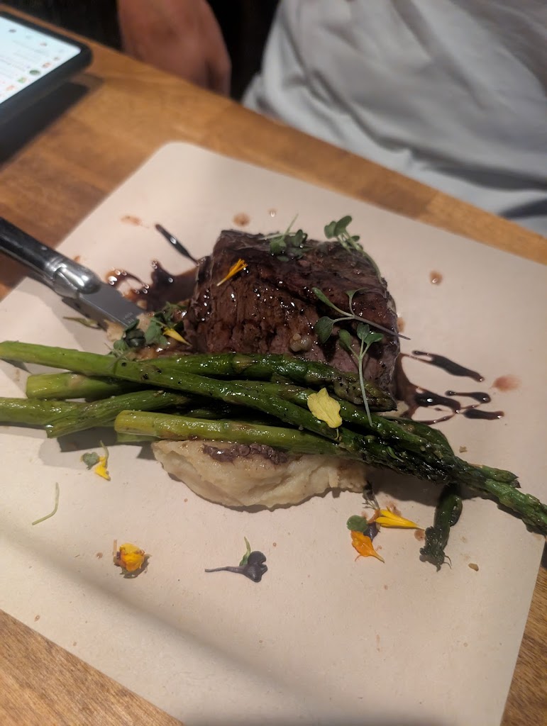 the best steak i’ve ever had cooked perfectly nice vibe inside overall an amazing place love it