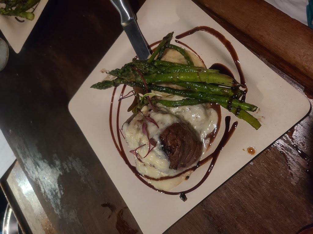 We stopped in for dinner after reading the fabulous reviews of this restaurant. The food was delicious, but not quite what I expected for a $120 meal for two. Taste - perfect! However, I ordered my Filet medium rare and it came almost well done. A young man was the chef for the night, and I believe it was the owners son. I absolutely understand teaching someone how to cook. I am not the type of person to send a steak back unless it was awful. The steak was moist, tender and delicious, just not medium rare, there was red or pink to be seen. In addition, the asparagus was actually cold and the grits were “maybe warm”. My husband had the scallops and he said they were fabulous, tender, no sand and cooked to perfection. His asparagus and grits were also cold. I don’t know if it was an off night because Monday’s are slow, but I was disappointed that the steak was not what I ordered. I will give them the benefit of a doubt and think that maybe he thought I said medium well instead of medium rare. So, just make sure they know how you want your steak prepared.