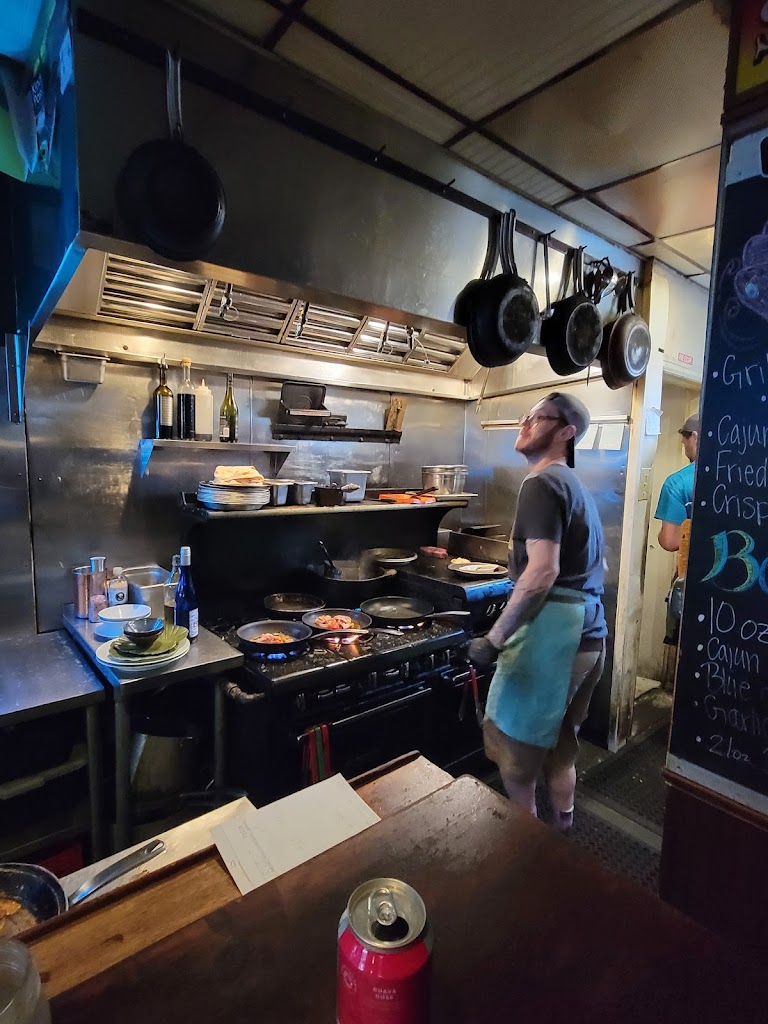 Description says it all….dive bar with excellent food! Chefs are all friendly & willing to discuss preparation & share methods & tips. Small space with huge outcomes! Get ready to be up close & personal with those around you & the staff & eat some crazy good food!