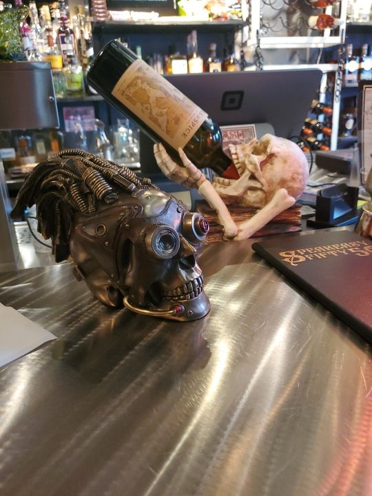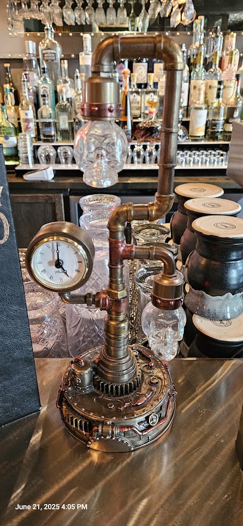 It's a steampunk speakeasy! Very cool decor and great bartenders. Kind of pricey but you don't go there with a drunk in mind. A great place to have one of their specialty drinks and visit with friends! They have appys and a great looking flat bread. We will be back with some friends to hang out and laugh!