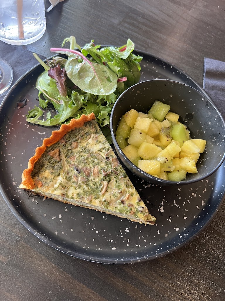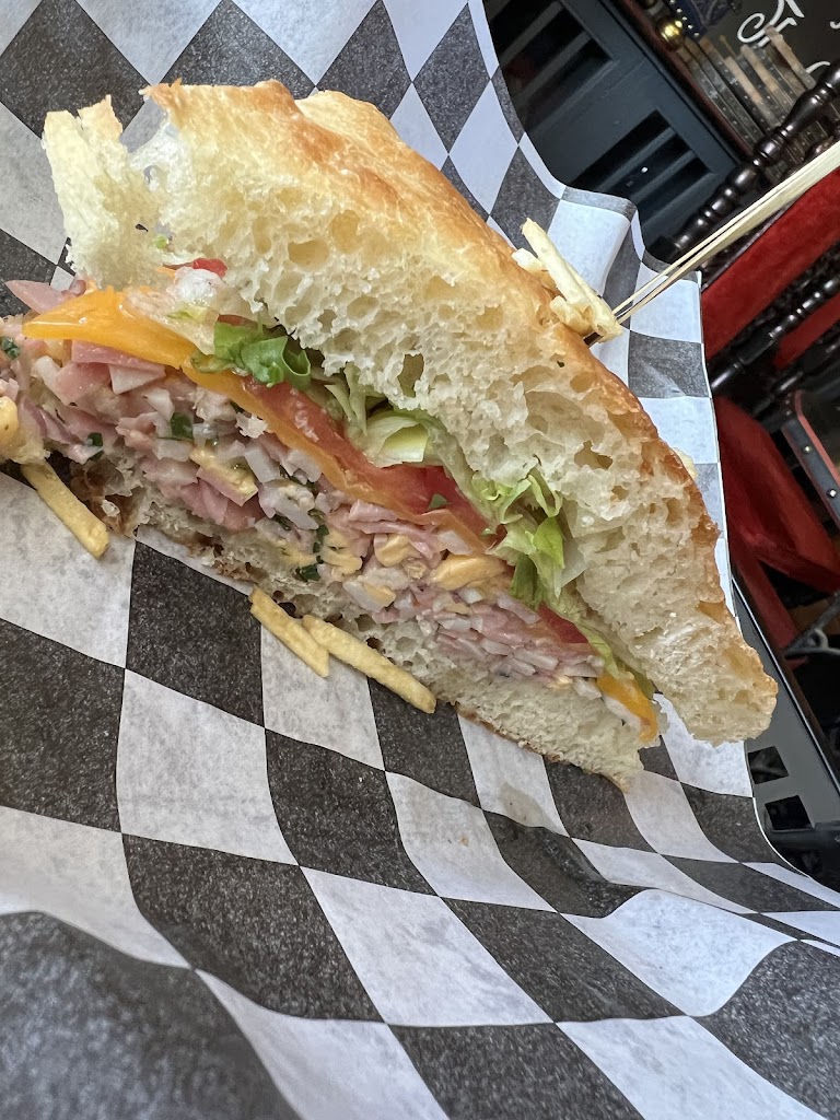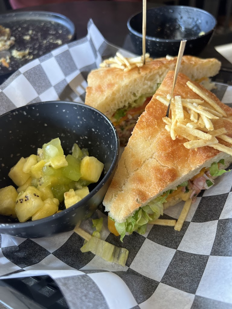 Club sandwhich and side salad - so much flavor. The bread was like nothing I have ever had before and I was told it was handmade. The sauce and dressing on the salad complimented each other so well and the fresh fruit on the side was refreshing!
