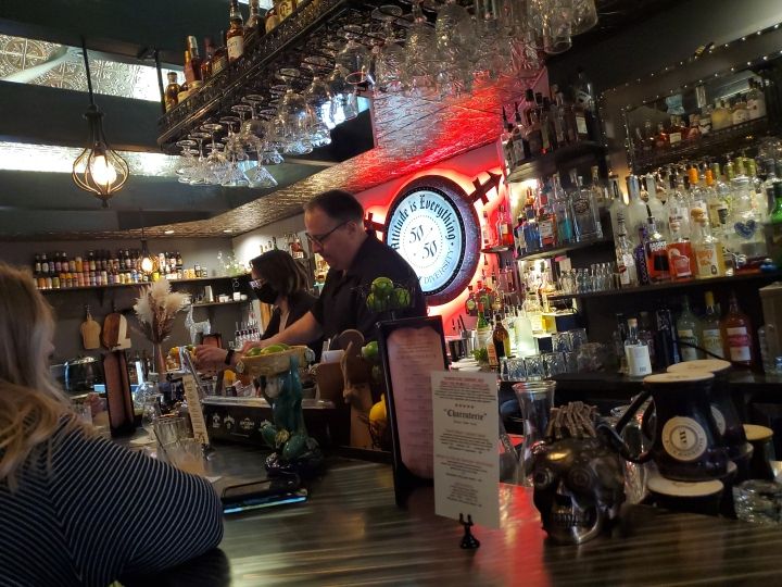 Fun place to share some mixed drinks and charcuterie. It's upstairs, but in the summer you can sit outside on ground level, otherwise not wheelchair accessable. Not a kid place, public parking nearby.