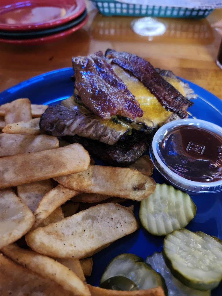 Food is usually really good in the past, burgers are always great, however the prices have gone up to a point it is almost laughable. They want $32 for a bar steak. Is the steak OK, yeah, $32, absolutely not. The catfish fingers were the worst I've ever had and tasted like nasty murky water. I've had many catfish in my life and this was by far the worst.