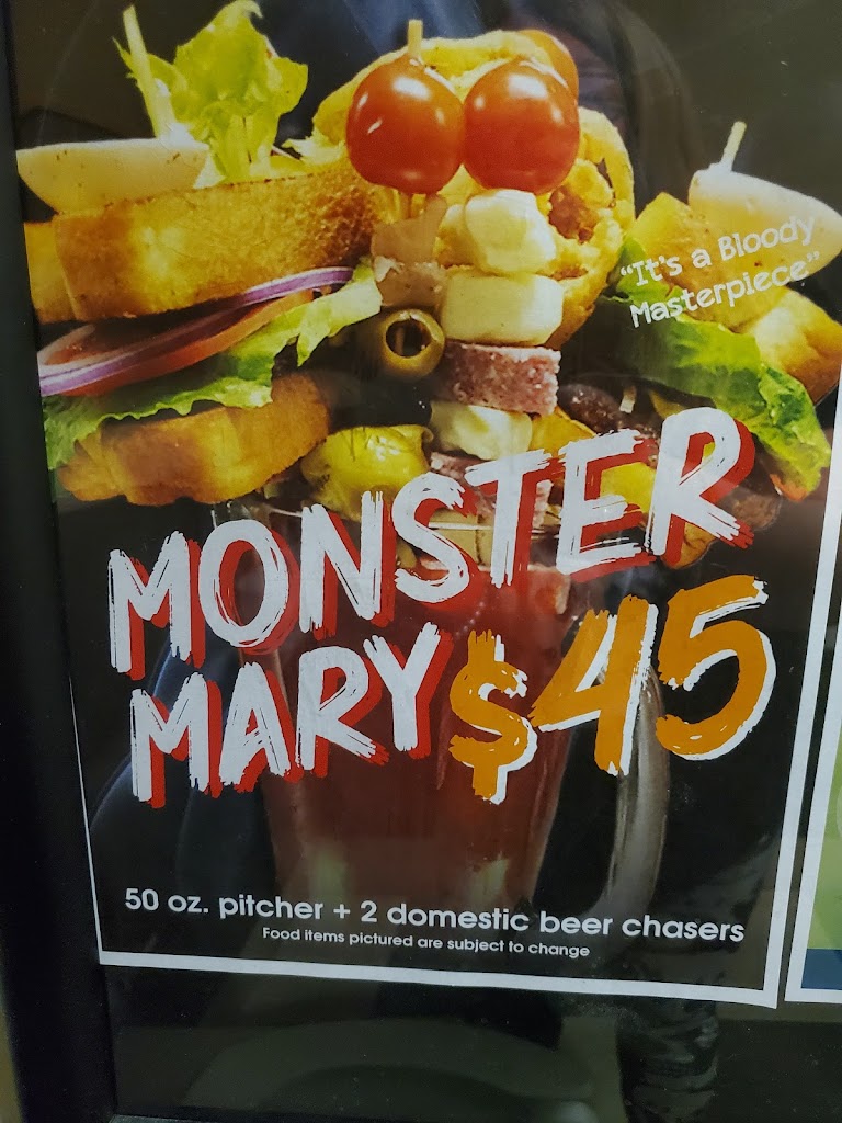 Solid sports bar and the monster Bloody Mary is a meal for about 3 people.