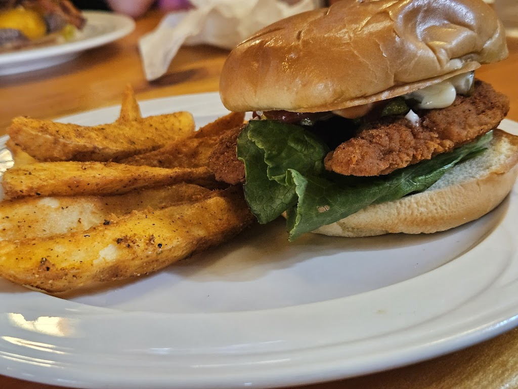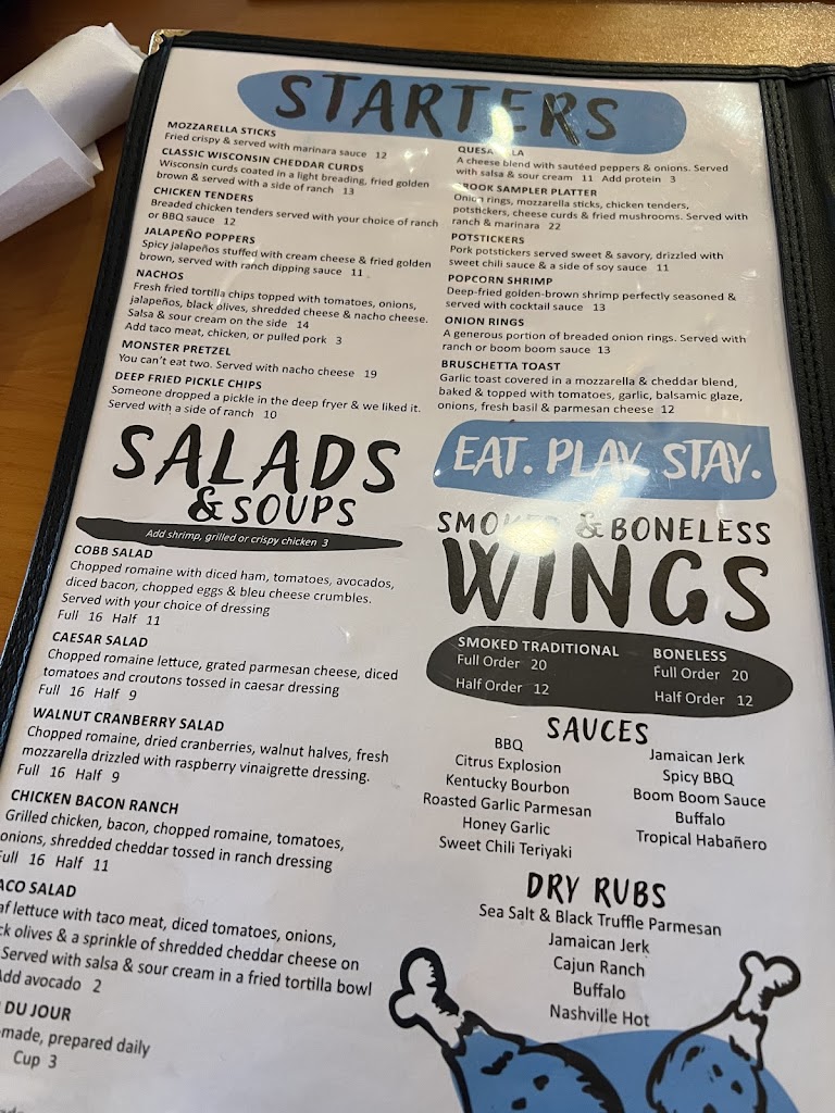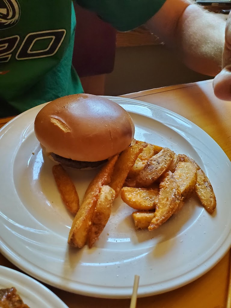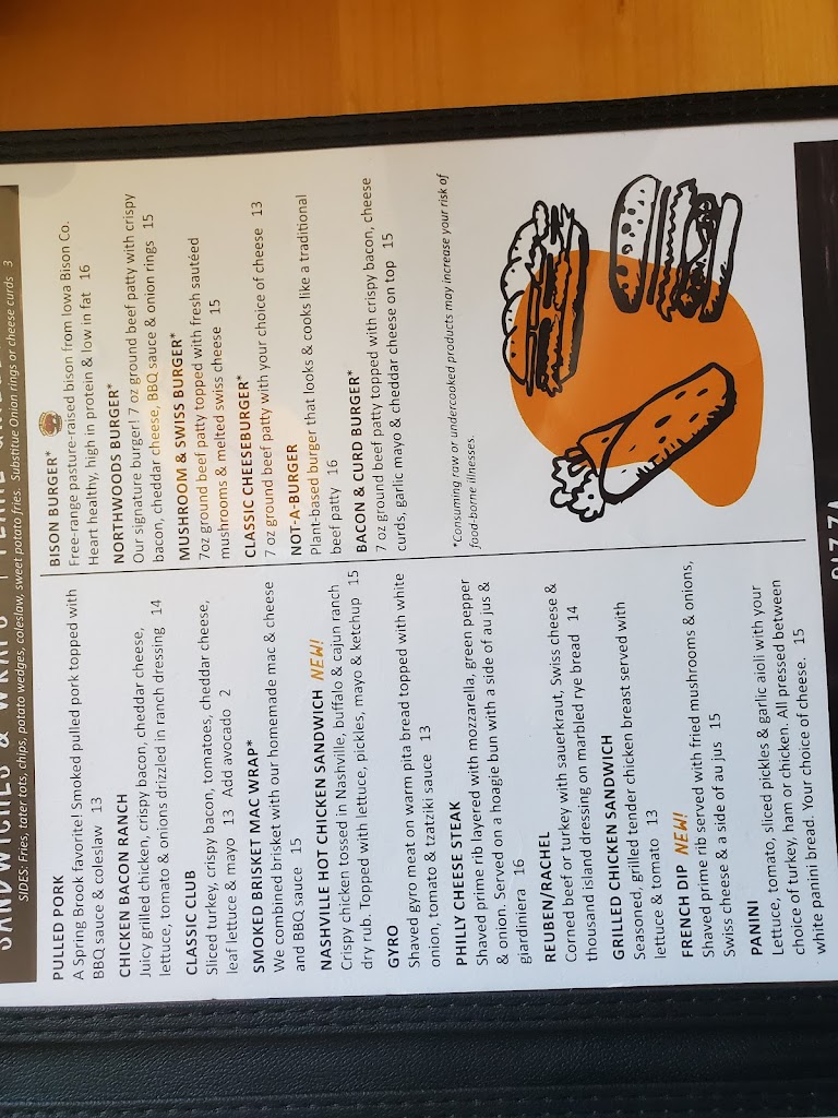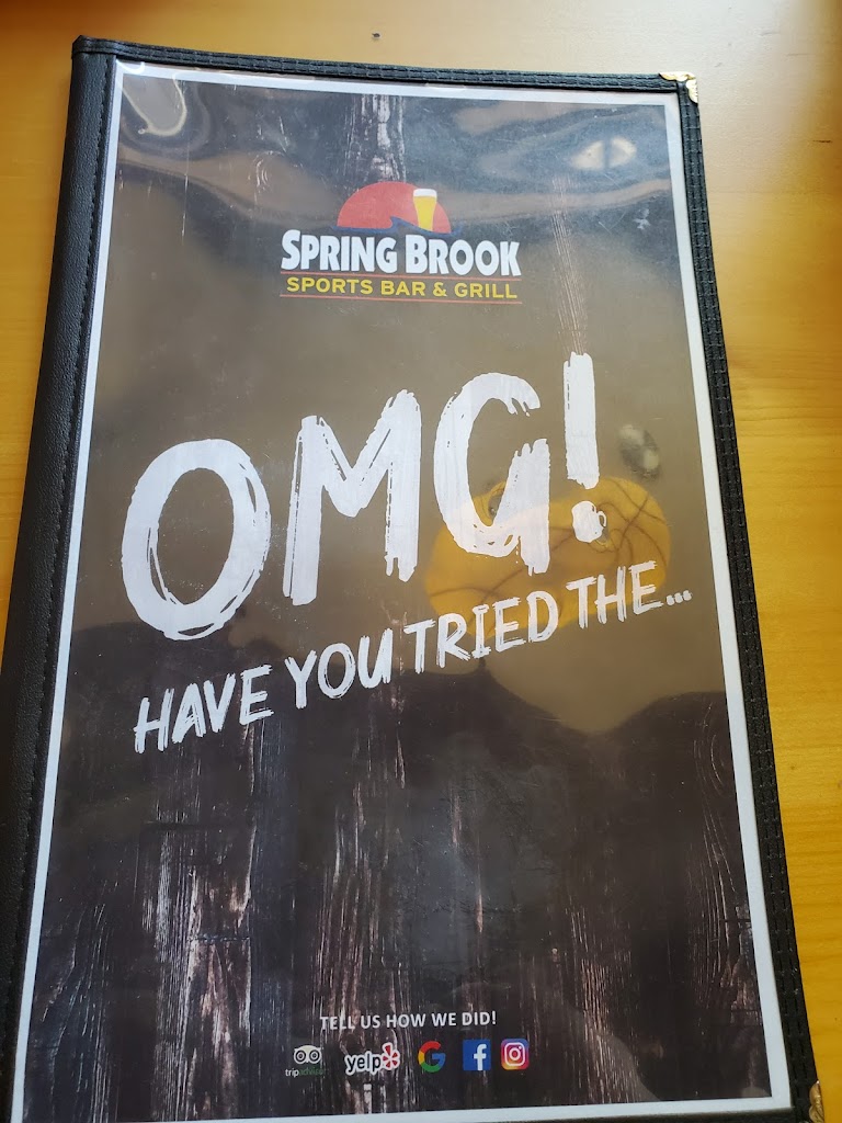 The Bar and Grill and Spring Brook was nicely decorated and looked inviting, but the staff were not really welcoming. They weren't rude, but also not very friendly. I had the gyro and tots, both of which were very good. My husband had the hot dog and tots - a hot dog's a hot dog :). My white wine was on the warm side - disappointing. It was convenient for the first night after a long drive, but we found other places to eat the remainder of our stay.