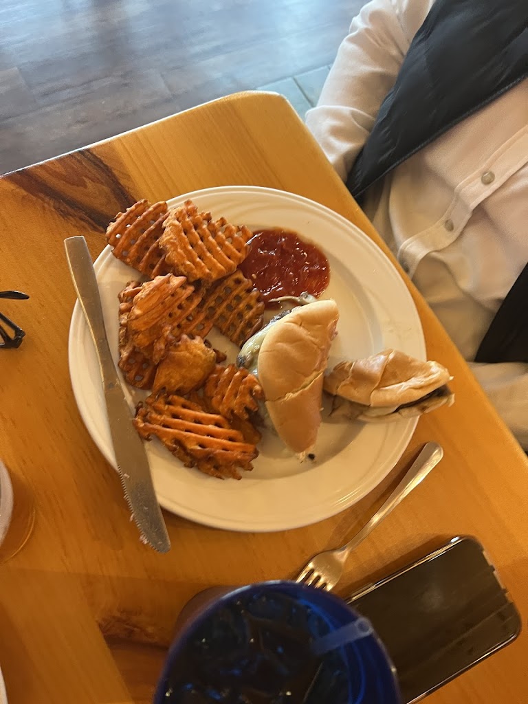 Food was basic burgers. Service was very slow. 1 hr 45 min for dinner.