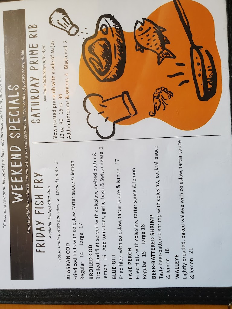 Had been there in the past 4 years every trip, was very disappointed. Went there for the friday night fish fry that had been recommended and it was not good at all. The perch tasted like the oil was long overdue to be changed out and it was over cooked and tough. Wife order a loaded potato and for the upcharge the lack of toppings was not worth it. Sorry but quality of the food has really dropped. The bright spot is that the server was very friendly and on top of her game.