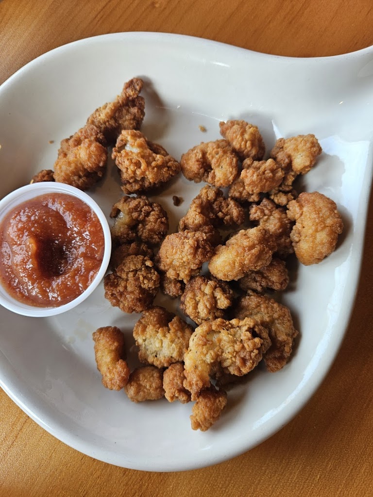 I ordered Popcorn Shrimp and Classic Wisconsin Cheddar Curds. Spouse had Bruschetta Toast and Chicken Tenders.