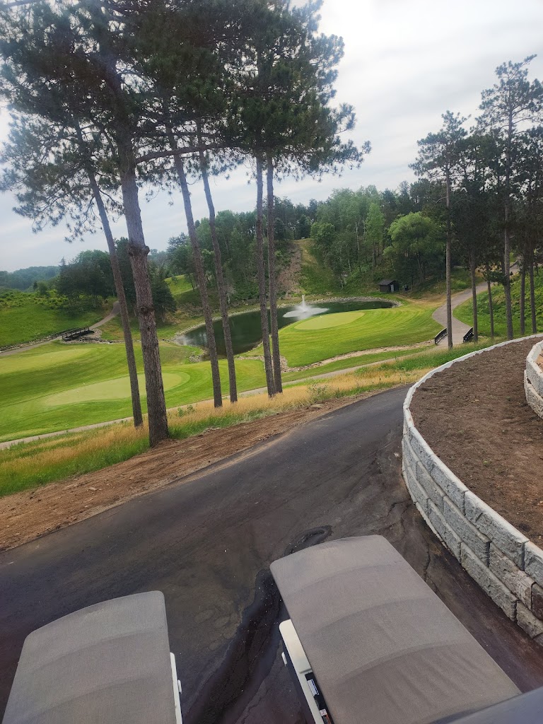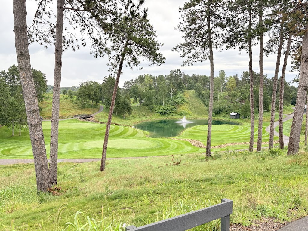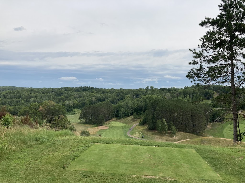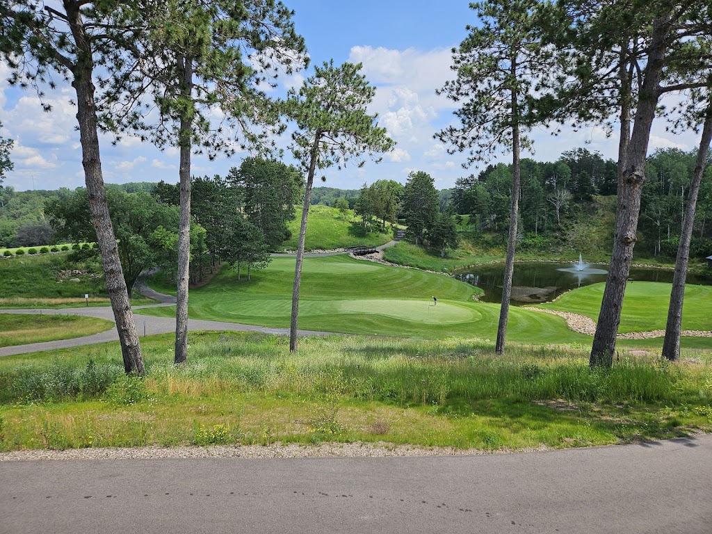 Overall, we had a nice golf experience. The playing surfaces are well maintained. Nice fairways, nice greens both bent grass. Those are the most important factor when I review a new golf course. Greens rolled true. The tee boxes were a little rough but likely a product of how much play the course gets. GPS in the cart is very nice and absolutely necessary for the course which has many blind shots. Gorgeous views in the St. Croix valley was a real bonus.