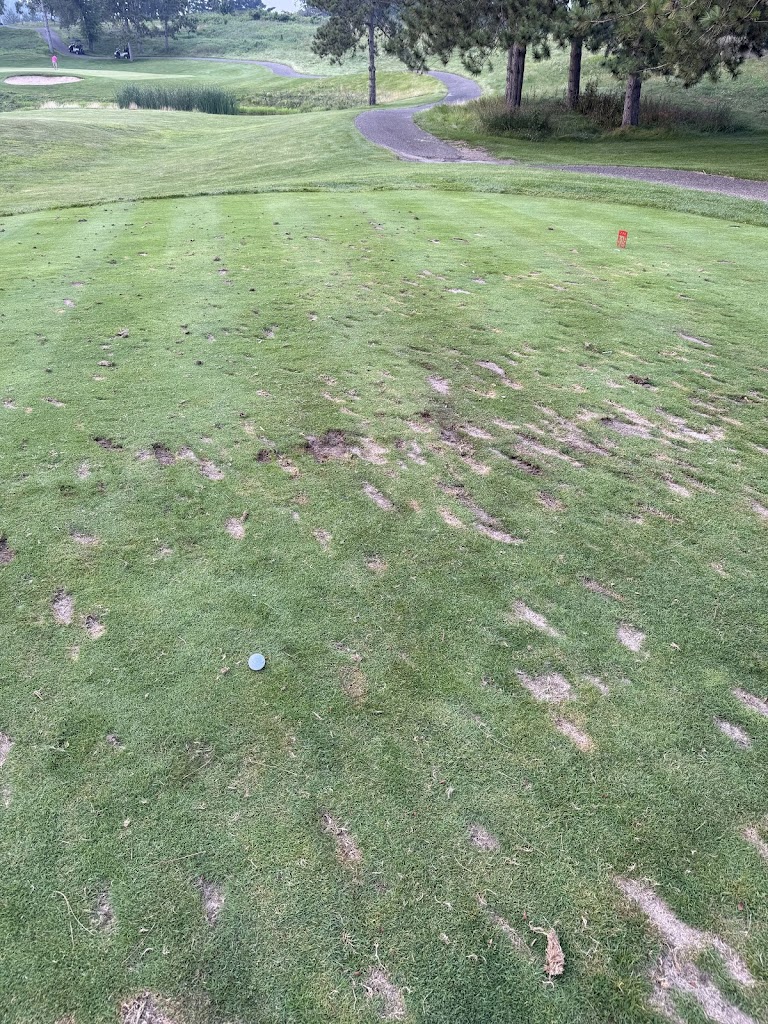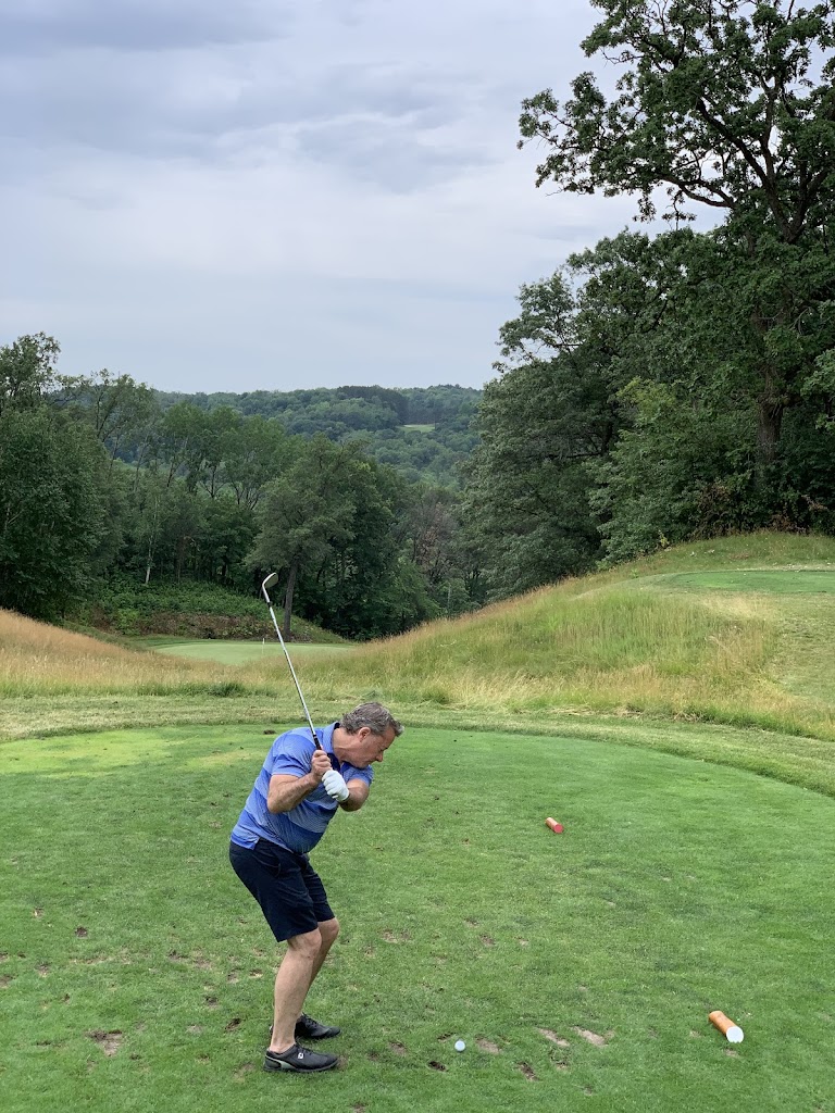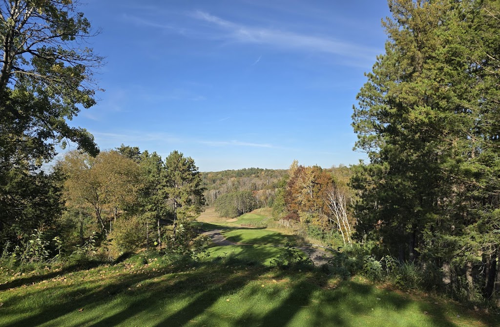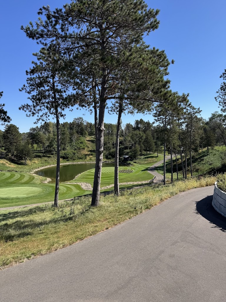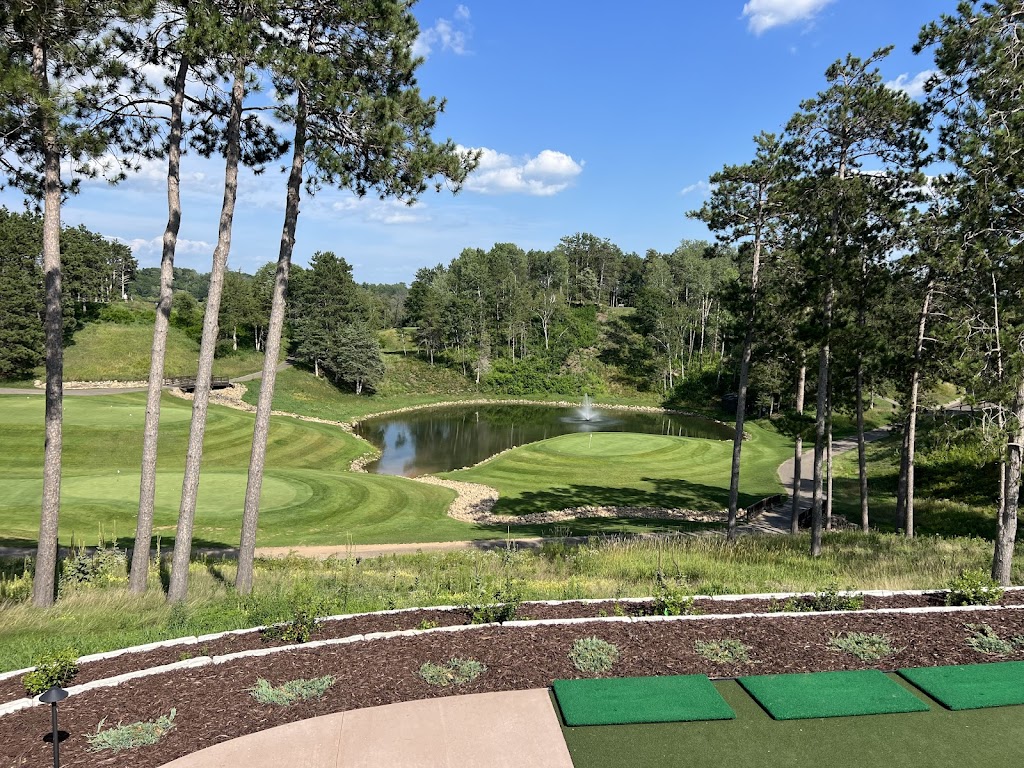 Overall, we had a nice golf experience. The playing surfaces are well maintained. Nice fairways, nice greens both bent grass. Those are the most important factor when I review a new golf course. Greens rolled true. The tee boxes were a little rough but likely a product of how much play the course gets. GPS in the cart is very nice and absolutely necessary for the course which has many blind shots. Gorgeous views in the St. Croix valley was a real bonus.