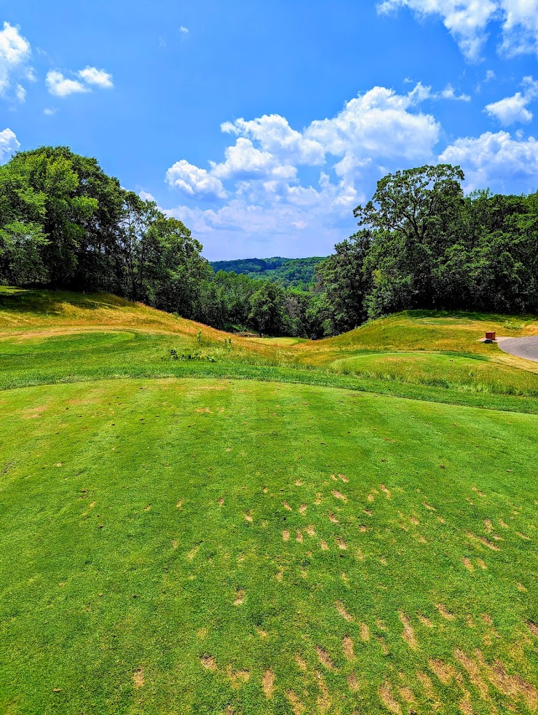 Thus a beautiful and challenging course. The course requires knowing your game well enough to know where your shots are landing. Nestled in a woods of Oak and other trees giving you tight shots, with occasionally hidden hazards. You aren't allowed to walk the course due to the length of the course and the elevation changes. If you've played a while have a consistent shot and are looking for a challenge, you'll enjoy this course.