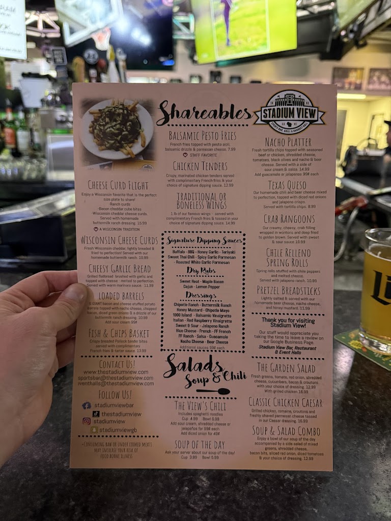 We love stadium view! The food is always so good, and staff are very friendly. I love that it is also family friendly, so we can enjoy lunch with our kids. It’s always their choice when we go out to eat!