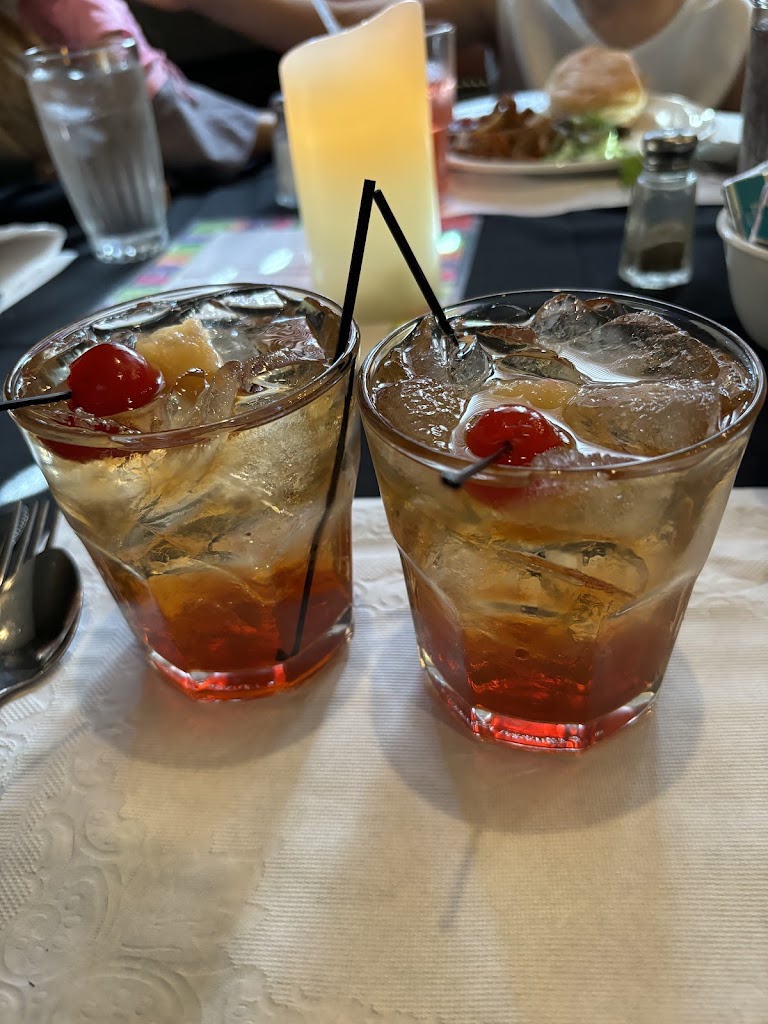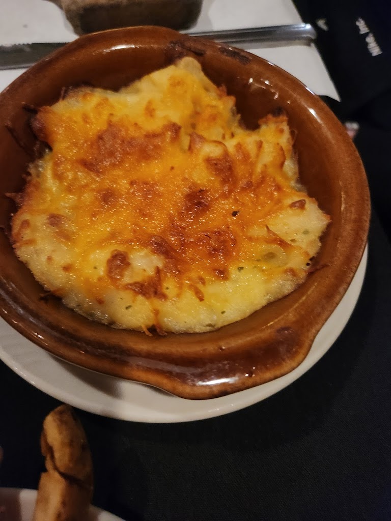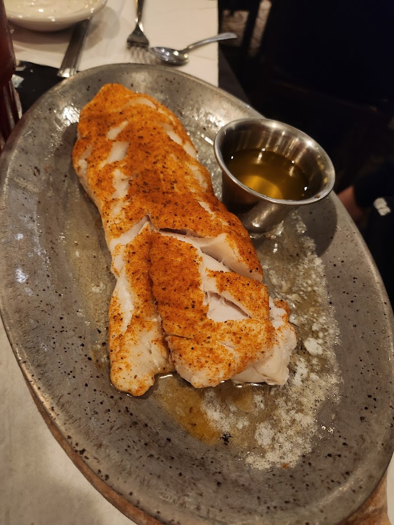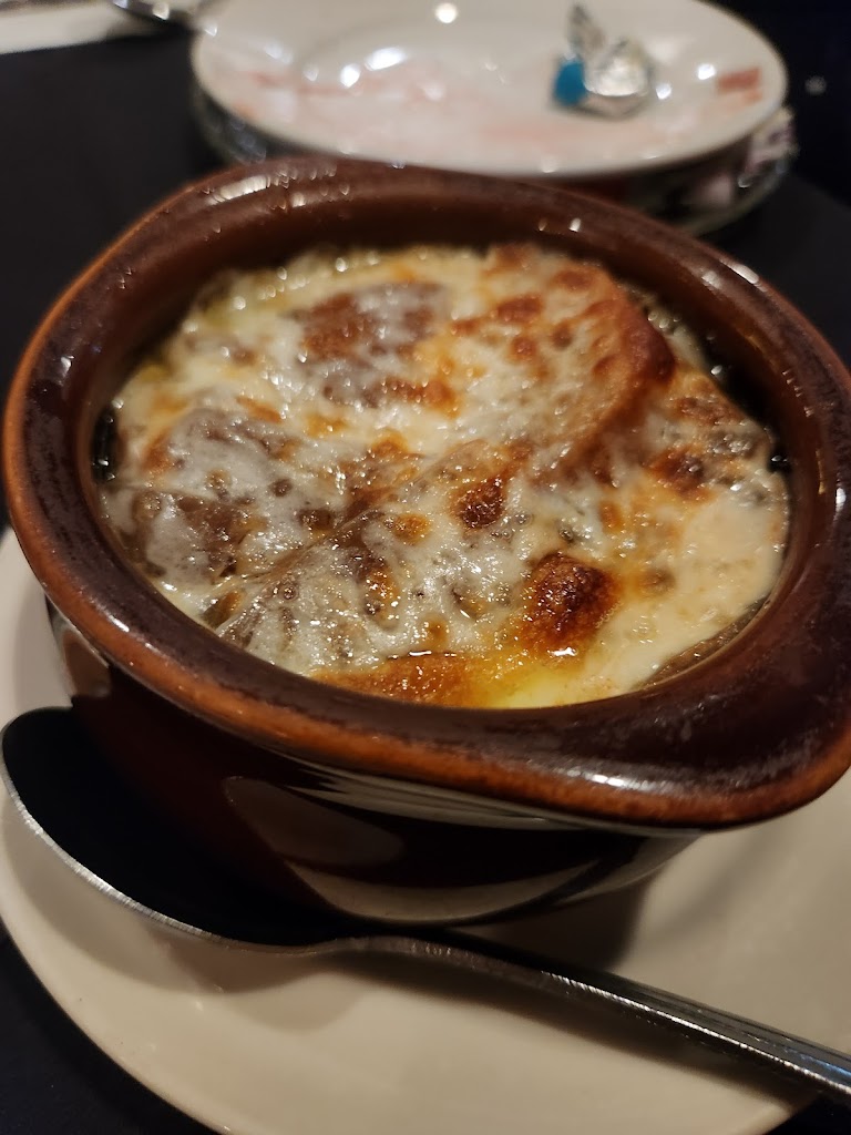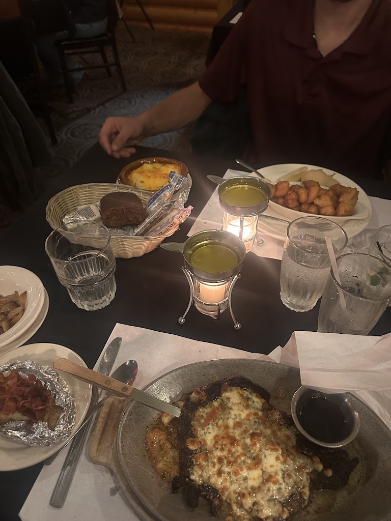 He ordered the Canadian walleye, and I had the steak and lobster—both were absolutely incredible! The dinner came with a relish tray, baked French onion soup, and salad, and every bite was delicious. Our cocktails were just as impressive, and our waitress Jessica truly made the night special.