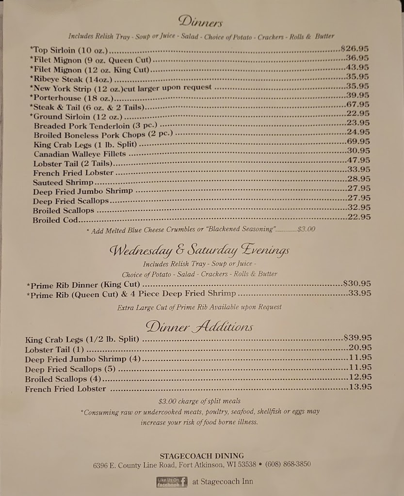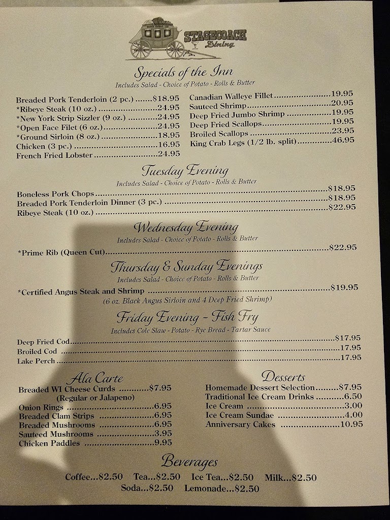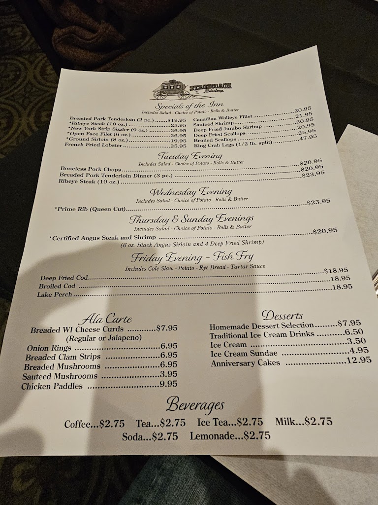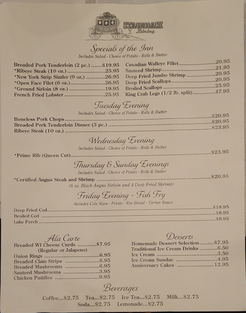First time dining at Stagecoach was an excellent presentation of atmosphere and food at a Wisconsin Supper Club.