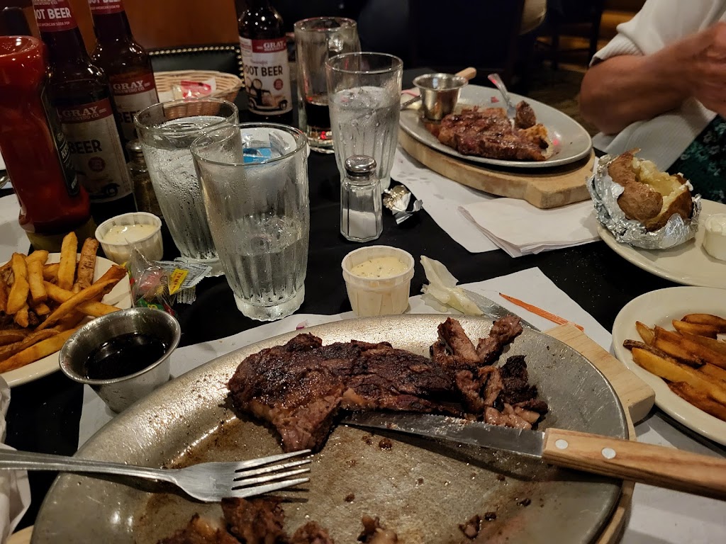 Group of 4 Saturday July 19th. Been here several times food is usually really good. Saturday 3 of us got steaks (2 porterhouse, 1 ribeye). All 3 were cooked perfectly but had no and I mean no flavor. All 3 of us took home most of our steaks and seasoned ourselves. This is the 1st time this has ever happened here. The steaks are normally delicious. I think they honestly just forgot to salt/ season so the flavor of the steak can come out. Everything else was as good as always including the top notch servers.