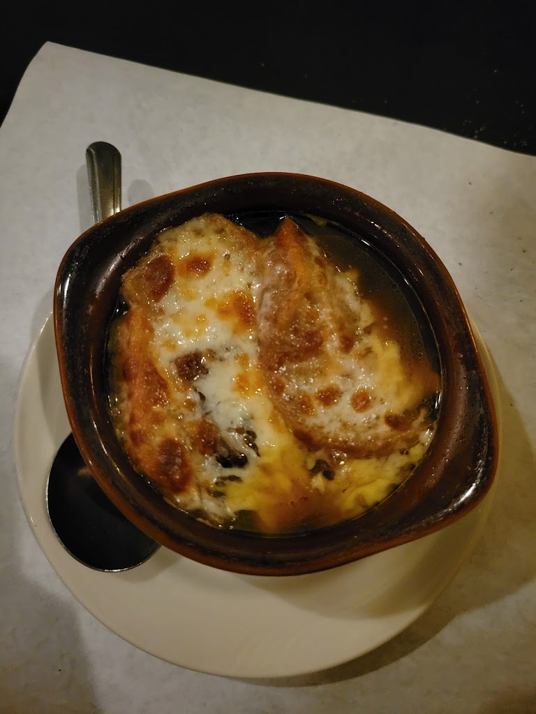excellent. Great onion soup and perfect prime rib. Very reasonable prices, too. I was pleasantly surprised. A nice touch..the waitress asked our names and then addressed us by name. Very sweet.
