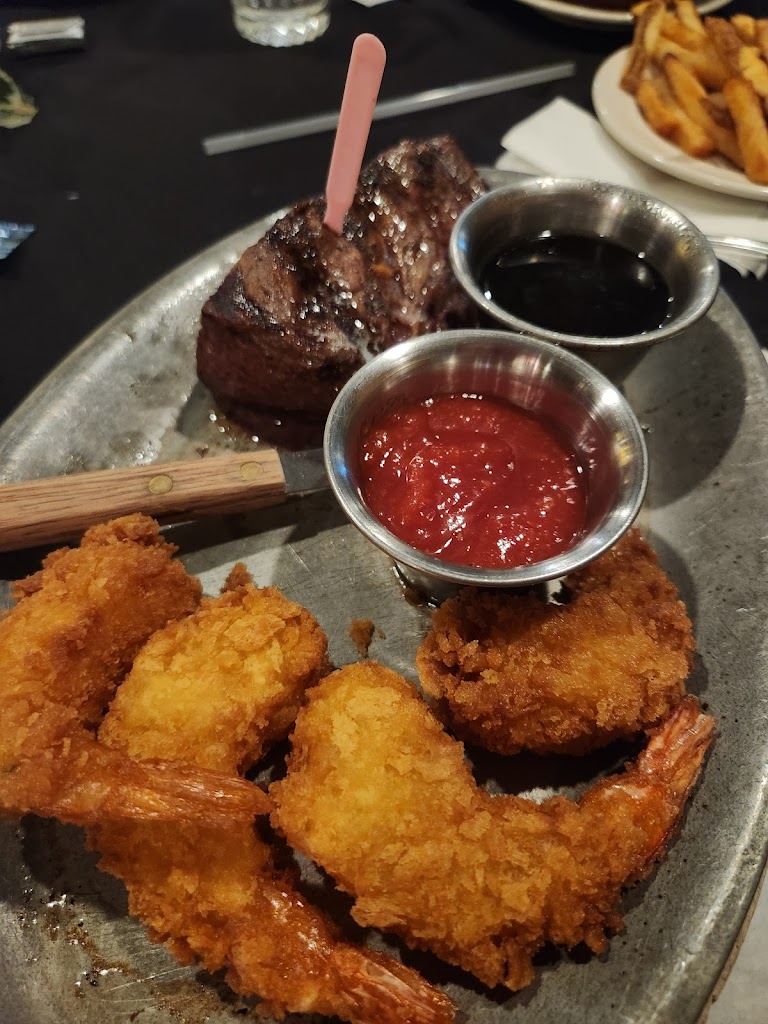 Great food, service and atmosphere! Steaks done perfectly med rare and shrimp light and crunchy. Thank you! We'll see you again!