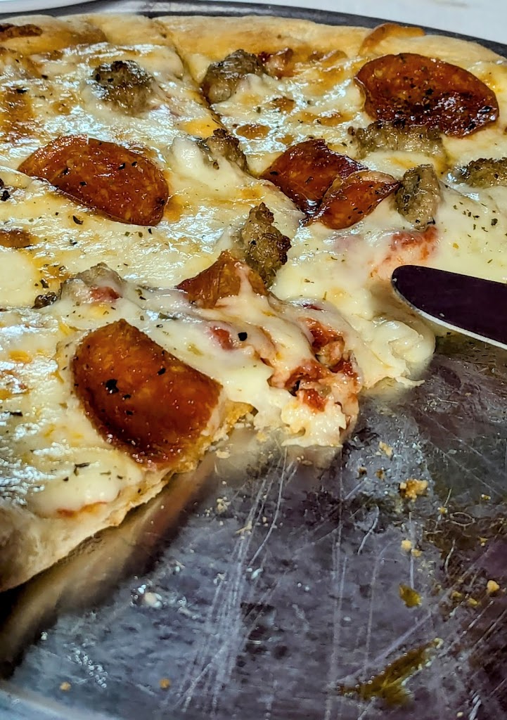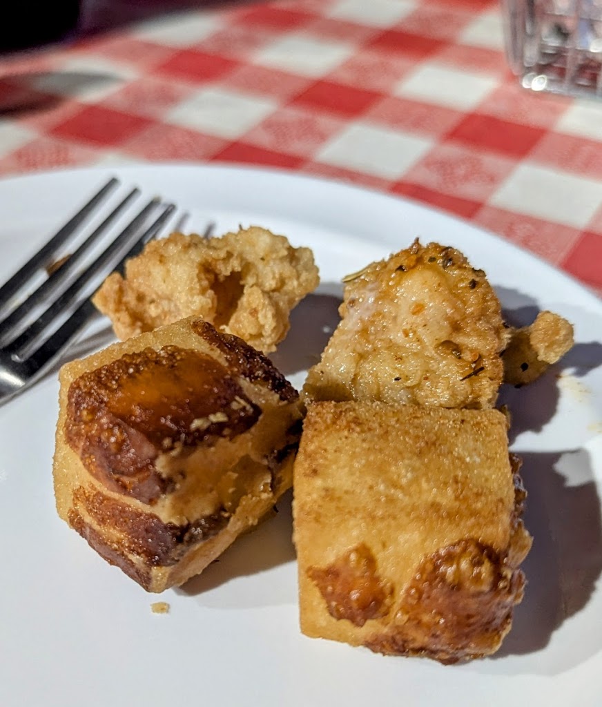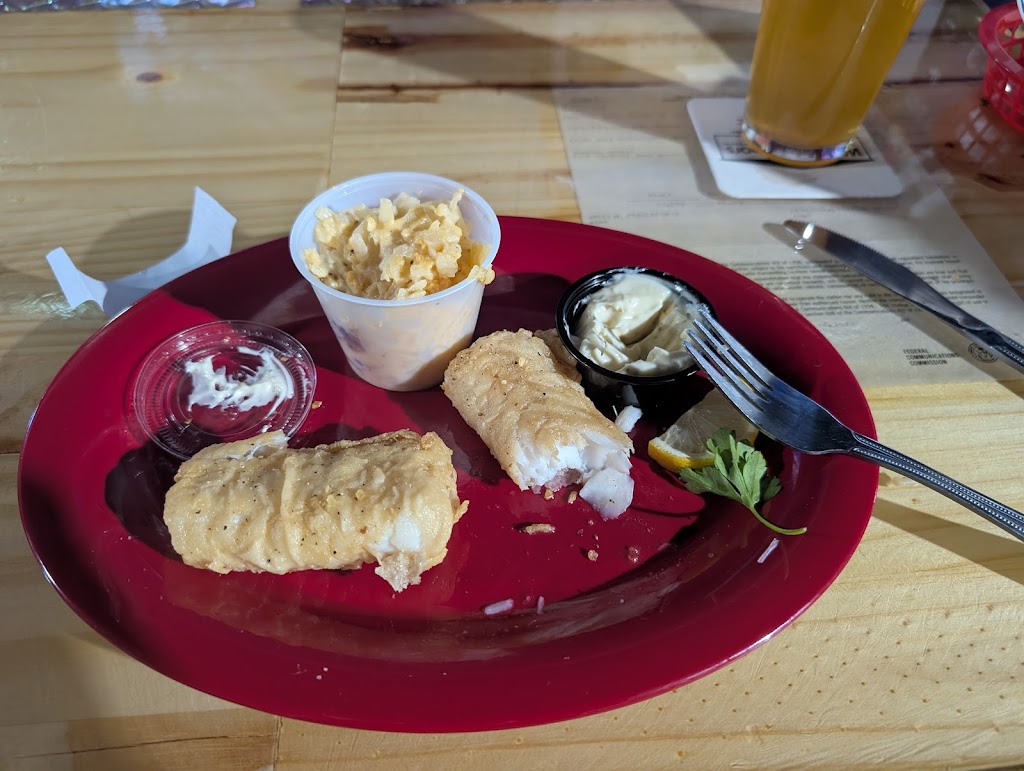Tried the fish fry on a Friday night. As you can see in the pictures the fried fish was pale colored but cooked perfect and tasted good. The pizza is also good, tons of cheese.