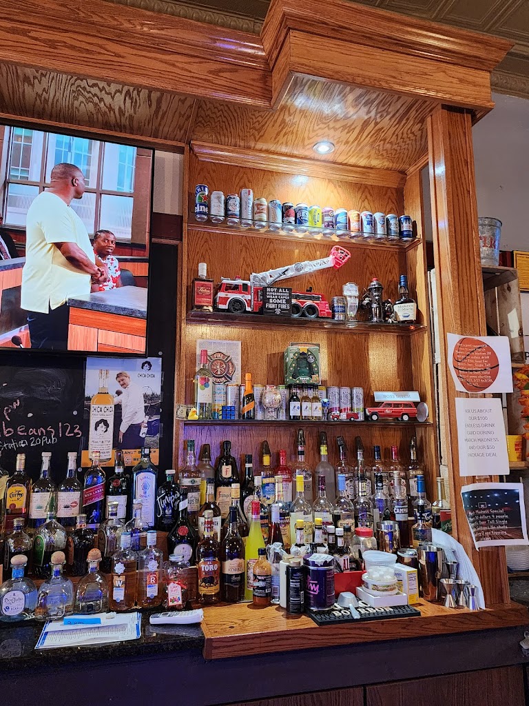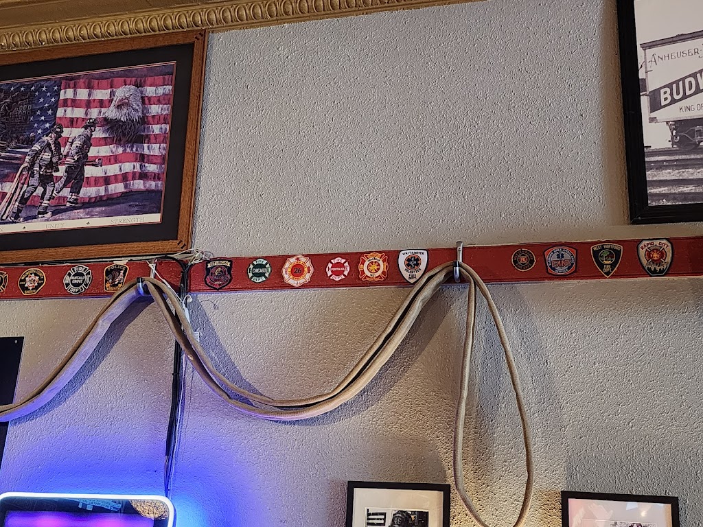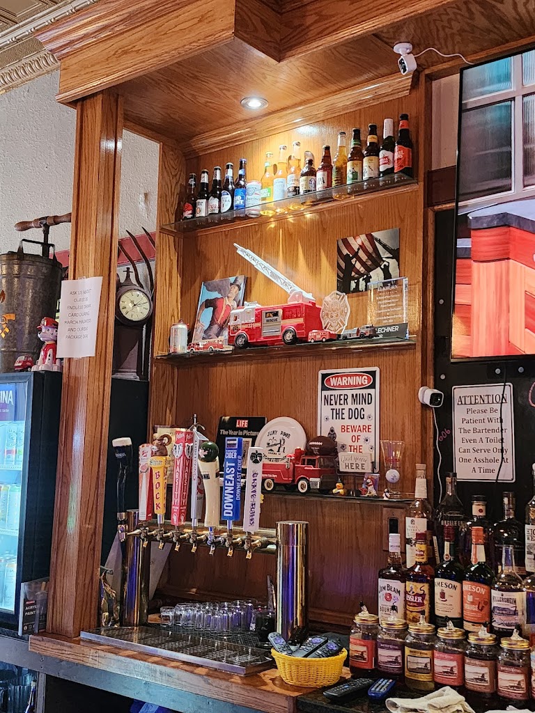 Chill Dive Bar vibe. Locals hangout. Firefighter theme decor and menu.