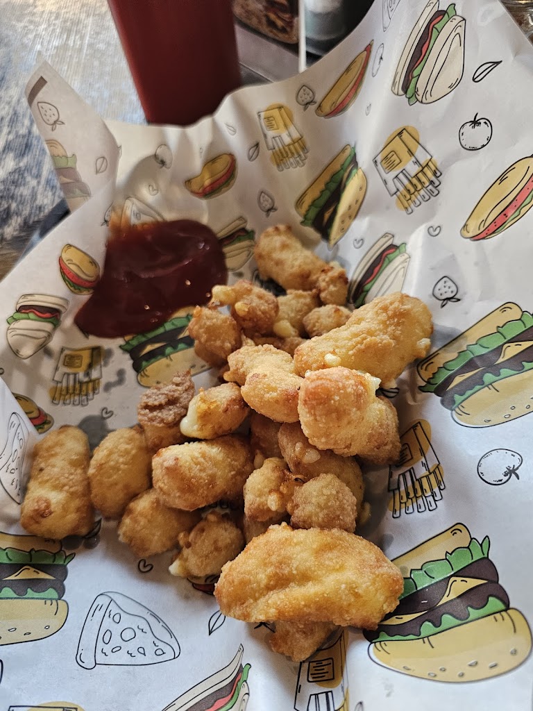 We had a fantastic cream cheese pizza created by Sarah and hand made by Ann :) Both of the bBloody Mary's were great and the atmosphere was friendly and nice. Also,we were there when the bartenders parents came in and they gave everyone free giant cookies :) We learned that the cheese curds come from Ellsworth wi, the cheese curd capitol. Can't wait to go again, great place, great service, fun faces.