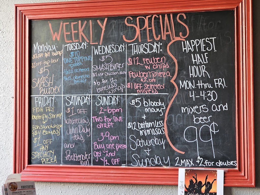 Update: 7-21-25. Anthony was our server this time. Very nice and friendly. $5 SMASHBURGER... AWESOME! Krista was our super nice and friendly server last time. Brussel sprouts are amazing! Ruben was good as always. I've heard they have great specialty pizzas. Plenty of drink options. Try an old-fashion with Jameson ORANGE. So yummy. Burgers are great as well.