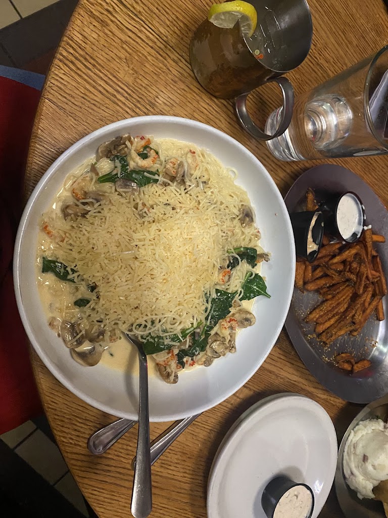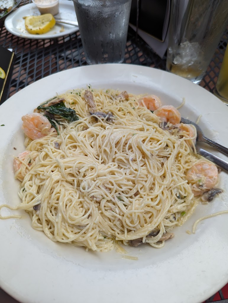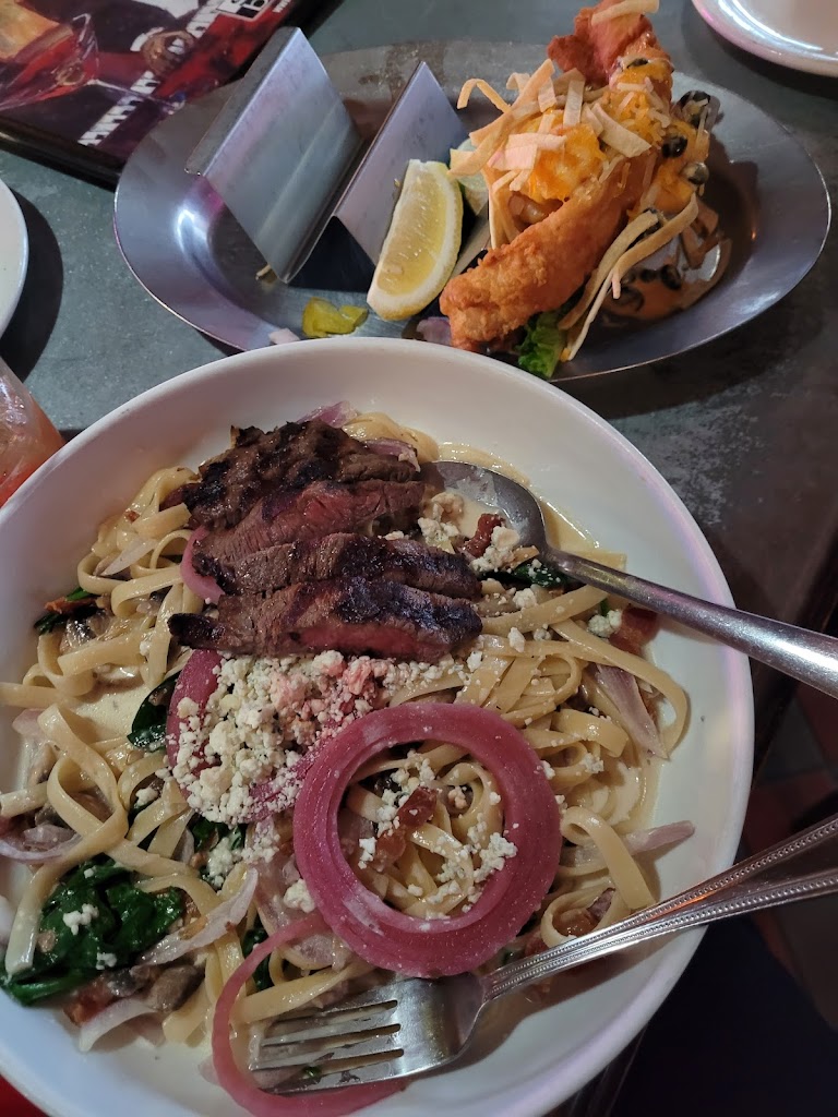 I had the pasta Rockefeller with crawfish. Stella blues menu has a variety of food for everyone. Great and quick service. A good cocktail menu and drink options.
