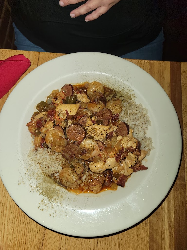 Food was delicious! Highly recommend the crab dip with French bread, and the gumbo.