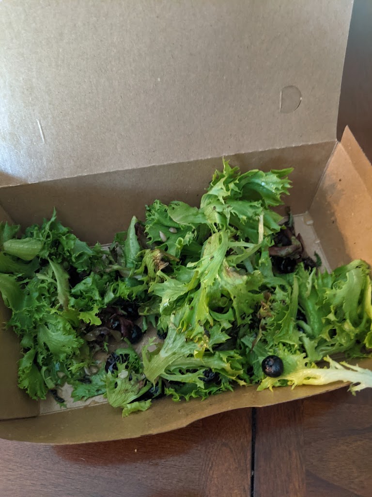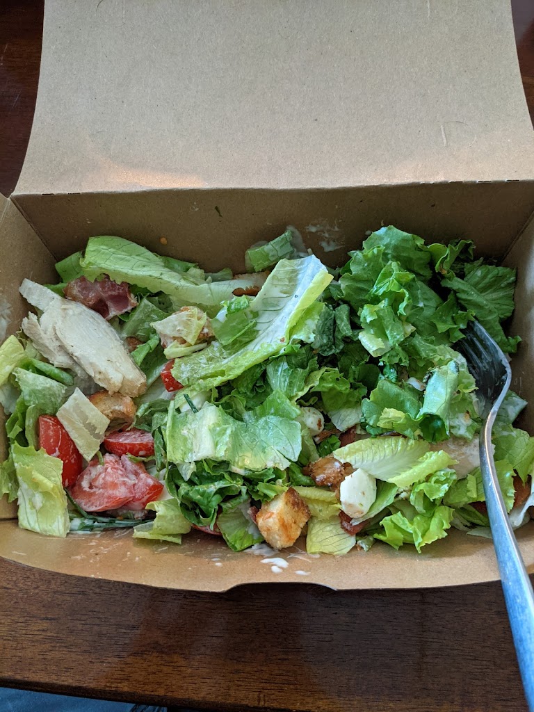 I mean, yes, it is a salad. Menu said spinach but I'm not seeing it. Chicken and bacon were extra. Was hopeful with all the 5 star reviews. Maybe we have to try something else?