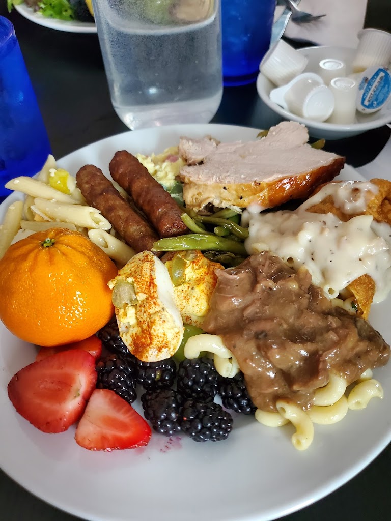 We Headed Here For The Easter Brunch. Upon Entering We Were Greeted & Quickly Seated. The Waitress Was A Tad Slow To Bring Our Beverages But They Were Busy. The Selection Of Food Was Amazing.The Waitress Came By Several Times To Ask If Needed Anything/Enjoying The Food. The Food Tasted Amazing As Well. We Definitely Enjoyed The Brunch & Left With Full Stomaches. 😋