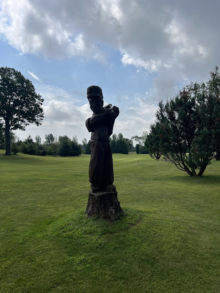 I came up here and played nine holes before participating in the door county triathlon. Thought the course was in great shape and it was not necessarily easy because the greens are small and raised. There are not many Sandtraps, which I like. And not a lot of water. The tea off placements are somewhat difficult because you have trees and narrow fairways to deal with. The reason why I gave this course four stars and not five stars is because the T’s are uneven grass it’s very difficult to find a good place to put your ball to start so that you’re not standing on a hill or slope downhill.