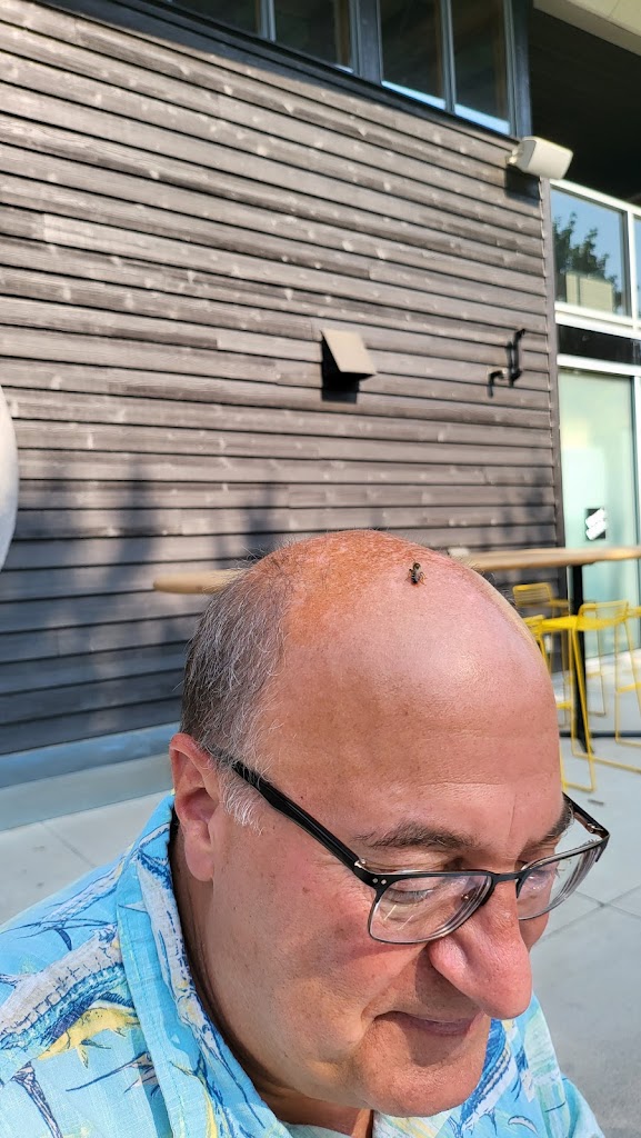 We spent a couple of hours sitting in the “special” seating while we watched him sitting with friends, mingling and visiting among other customers on the patio. As he should. Everyone who visits an establishment should welcomed.
