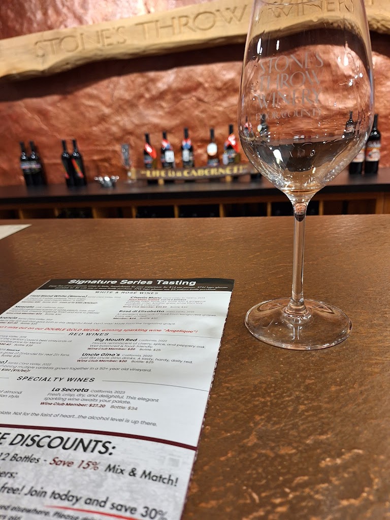 Stones throw winery has the best wine in Door County. The tasting room is separate from the separate wine bar but don't be surprised. Excellent wine and cost is higher but worth it. Sangiovese and Albarino wines are special. Enjoy!
