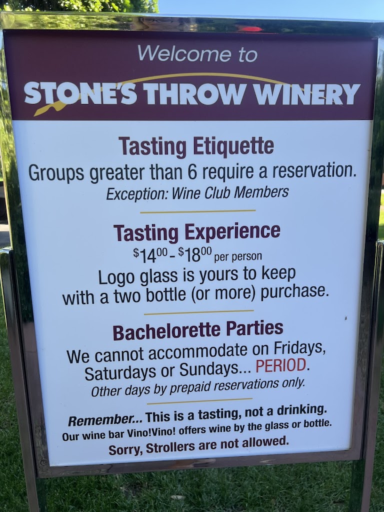 We enjoyed our visit at Stone's Throw! Timed our visit to be right at open as we had our three young children in tow (10& under). We had activities for them and had a really nice time. Yes, it is more of a Napa or French stylized tasting experience but that's the point. If you bring your kids prep them beforehand that there are no games, no places to sit, and it's more of a museum (that's how I explained it). Keep an eye on them and you'll be just fine. Delicious single varietals. Thank you for great conversation Bill! I'll be back!