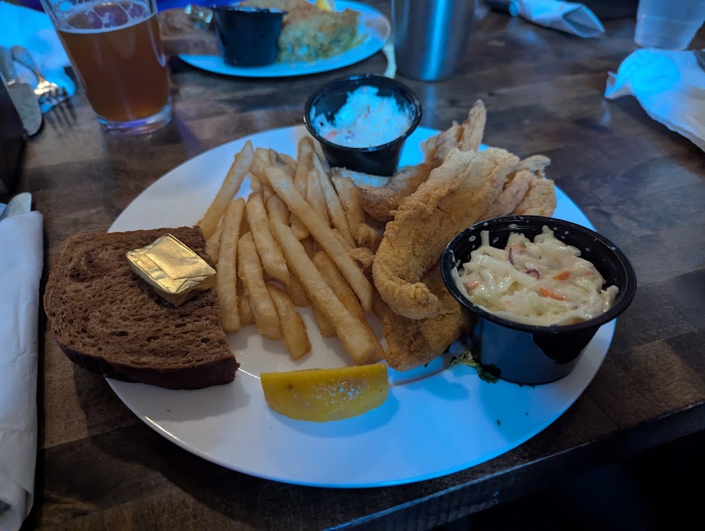 Great good, decent service, nice atmosphere but next winter they need to add a double entrance to the back, when anybody walks in the back door(almost everybody) there’s a fattest gust of wind that comes in🥶 but it is a great place to eat and get a few drinks with whoever!!!