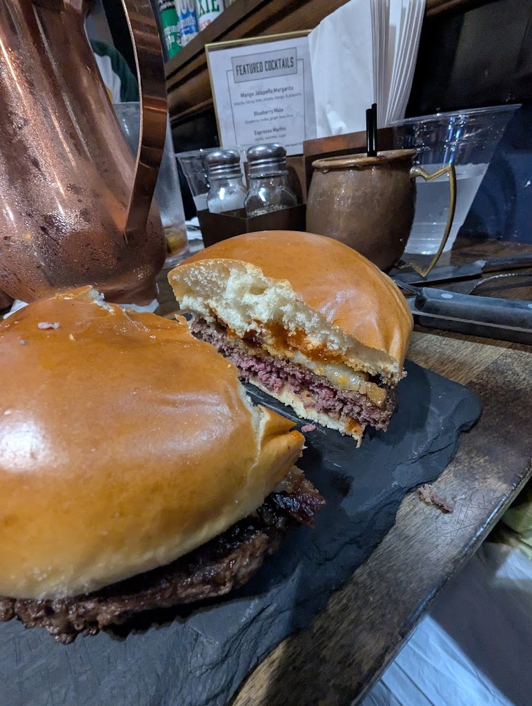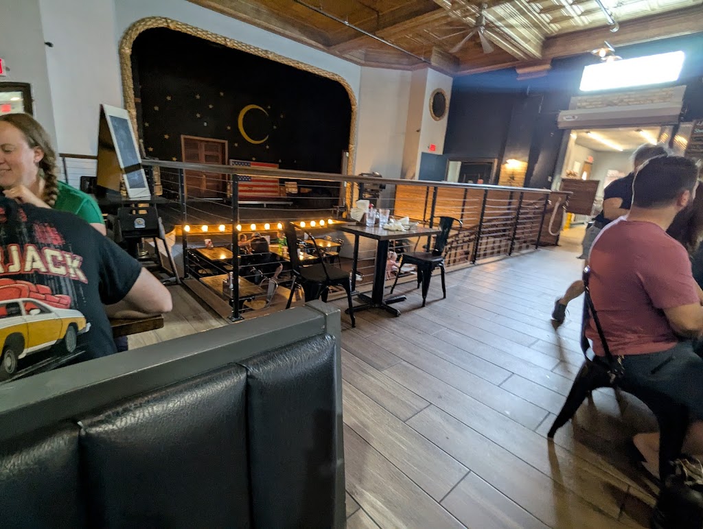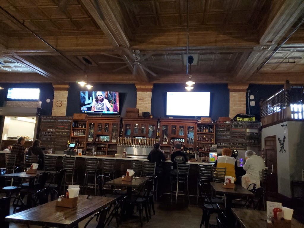 The brewery is in a repurposed theater, which is a pretty cool setting. The maple old-fashioned was excellent and came at the recommendation of the waitress. We enjoyed the bacon wrapped jalapeños, but after two raw burgers (the original and the remake) were served we gave up on dinner. Service was good.