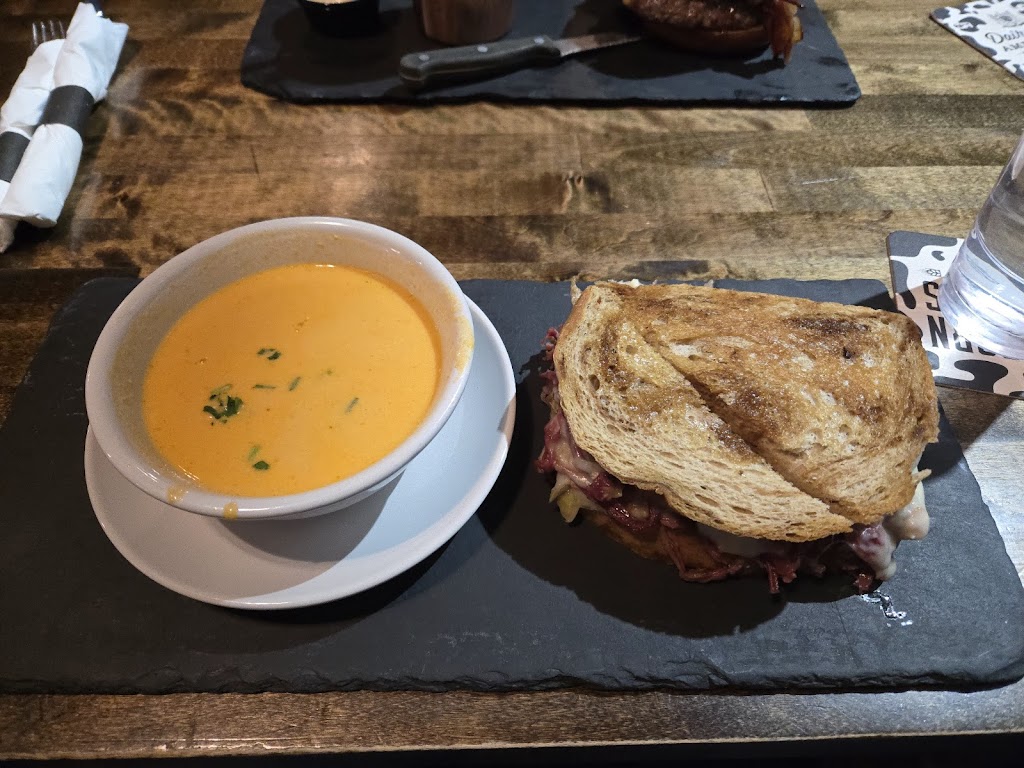 Stunning interior! Incredibly well done. The beer is tasty and fresh. The Black and Bleu burger was delicious but that beer cheese soup was absolute fire!