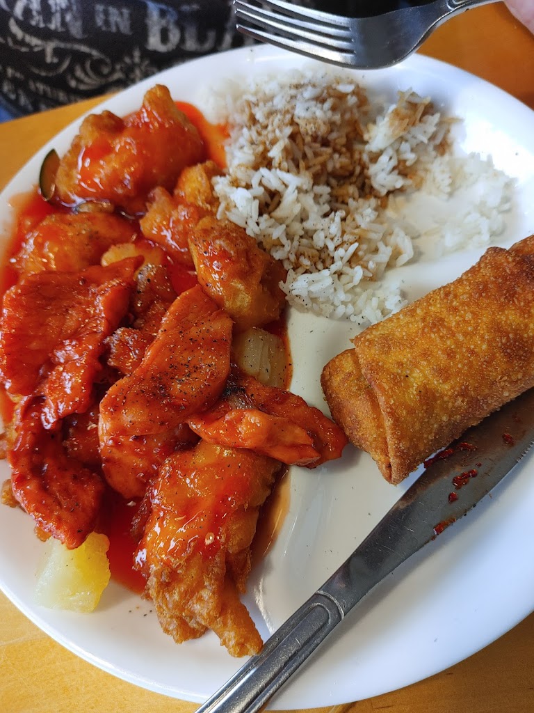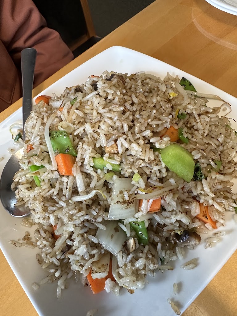 I love this place. Chicken fried rice and Mongolian, beef or pepper steak is my choice, my go to, my wife likes the pork fried rice, also, they have vegetarian egg rolls as well as vegetarian fried rice.