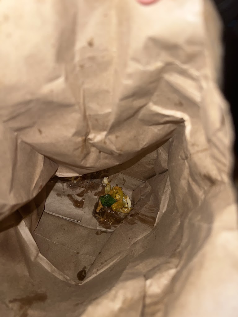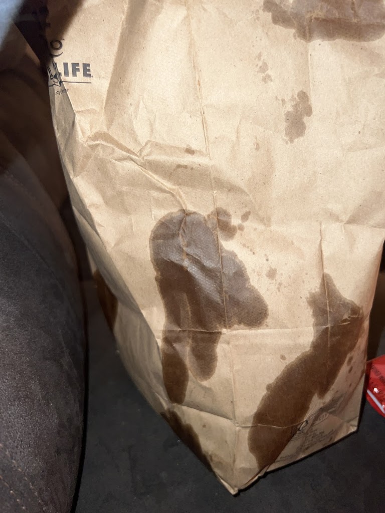Nasty. Is this how online orders come ? Come on! No wrapping grease every where. Stuff falling out. Tried to call but I didn’t want Coral making another one like this one. 🤢 this is now the third time. Get it together !!!