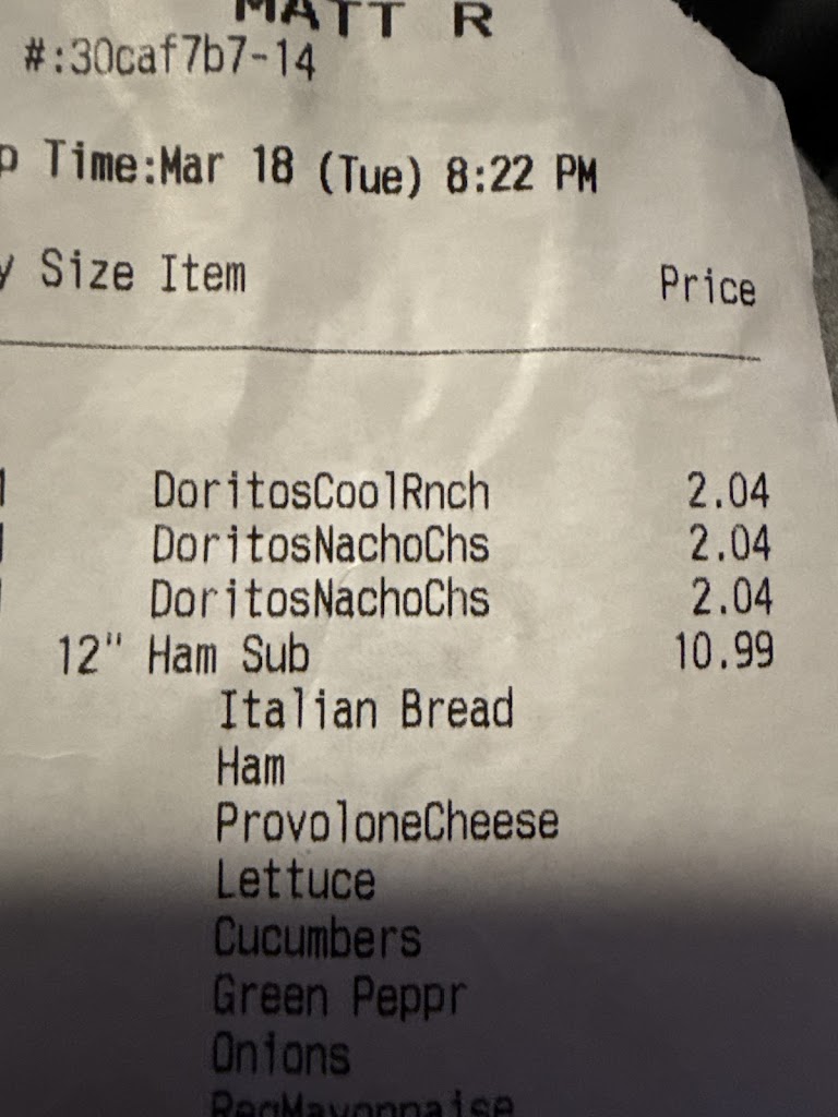 I ordered door dash. And I ordered 2 nacho cheese Doritos and 1 cool ranch Dorito. They put all cool ranch Doritos in my bag. Not caring about wht I ordered. Also the sub was poorly made. Tried to talk to them but they hung up twice on me. I will be calling corporate and anyone higher up on subway. I don’t want to but the manager and the workers working tonight on march 18th tht were closing need to get trained. Also they wrapped my sub so tight. It’s nuts